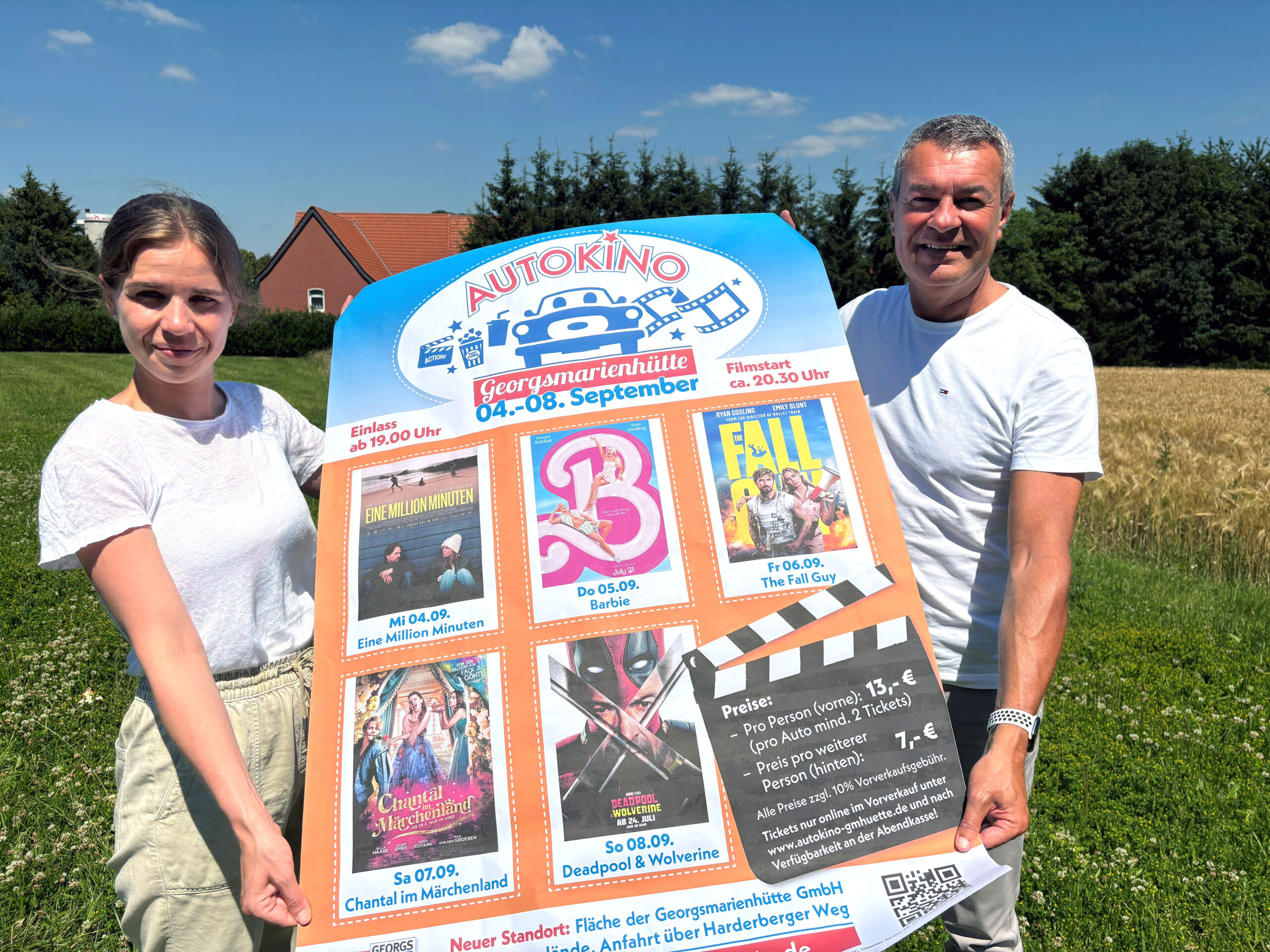 Bildunterschrift zum Titelbild: Doreen Prell (Stadtmarketingverein Georgsmarienhütte) und Olaf Bick (Geschäftsführer Stadtmarketingverein Georgsmarienhütte) freuen sich auf die abwechslungsreiche Filmauswahl beim diesjährigen Georgsmarienhütter Autokino.