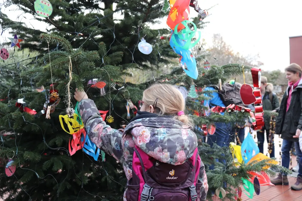 Bis zum 24. November können sich Schulklassen in diesem Jahr wieder für das Weihnachtsbaumschmücken im Zoo Osnabrück bewerben. Am 3. Dezember wird der große Baum im Eingangsbereich des Zoos dann festlich behangen. Im Anschluss können die Kinder als Dankeschön den Zoo erkunden (Archivbild von 2018). / Foto: Zoo Osnabrück (Lisa Simon)
