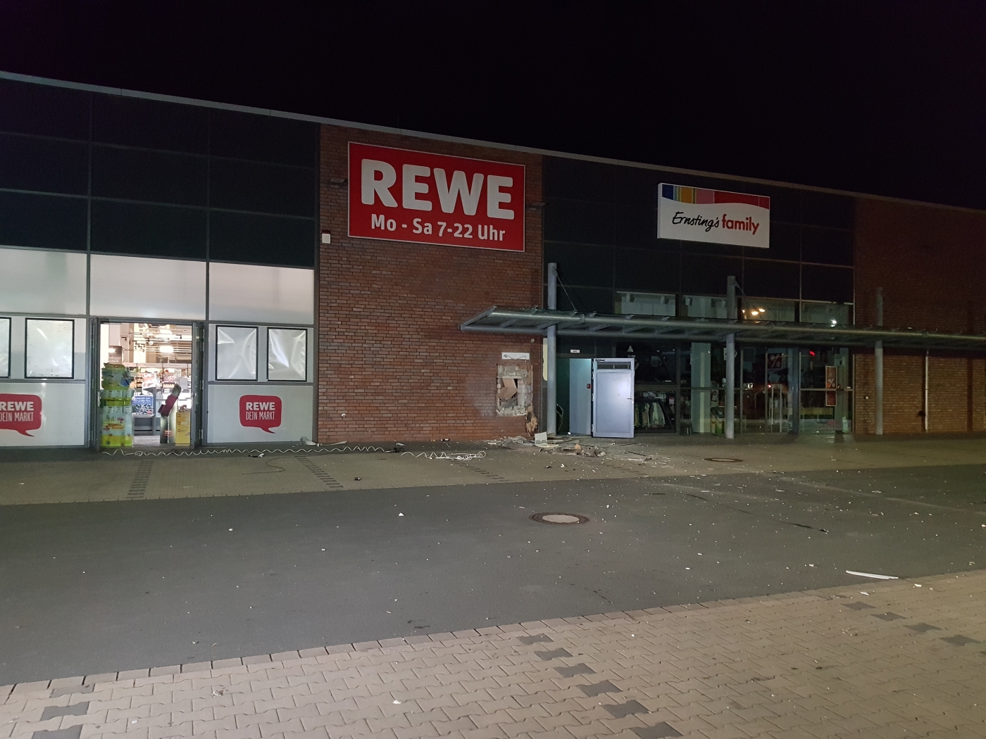 Am Automat entstand Totalschaden, Trümmer waren über einen breiten Parkplatz bis auf die Straße geflogen. Einzelteile wurden sogar bis auf den Radweg an der gegenüberliegenden Straßenseite geschleudert. Auch das Gebäude wurde stark beschädigt. Ob die Täter Bargeld erbeuteten, wird noch geprüft.