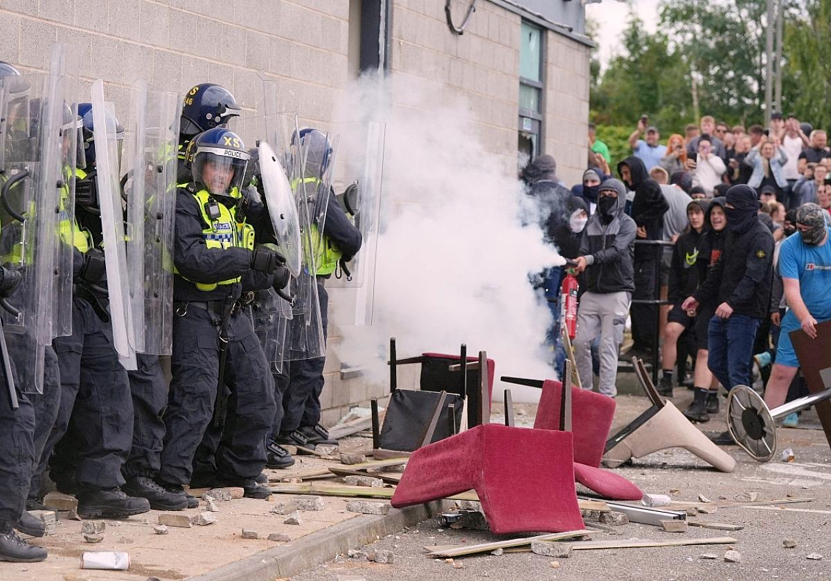 In der Stadt Rotherham kam es zu ernsten Konflikten, als eine Menschenmenge versuchte, in ein Hotel einzudringen, in dem Asylbewerber vermutet wurden. Laut Augenzeugenberichten wurden Polizisten mit Schutzschilden aufgestellt, um die gewalttätigen Demonstranten am Betreten des Gebäudes zu hindern. Trotz Bemühungen der Beamten gelang es einigen, in das Gebäude einzudringen. Der Polizei zufolge wurden mehrere Fensterscheiben eingeschlagen, eine Mülltonne angezündet und mindestens ein Beamter verletzt. Es war unklar, ob das Hotel im Vorfeld evakuiert wurde.