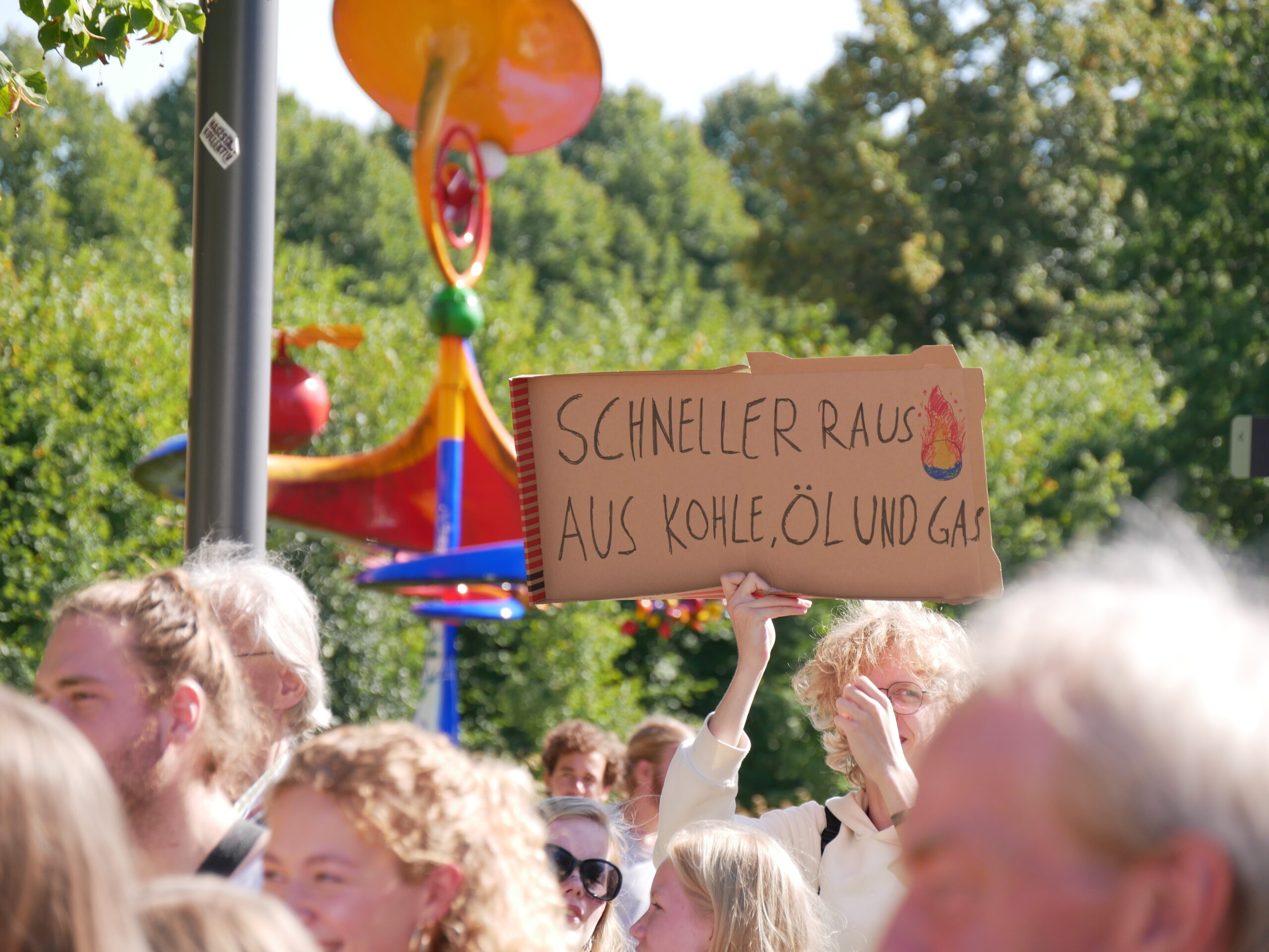 Auf den mitgeführten Bannern wurde u.a. die Beendigung klimaschädlicher fossiler Subventionen, die Schließung des Flughafens FMO und die Einführung von CO2-Steuern für Großkonzerne eingefordert.