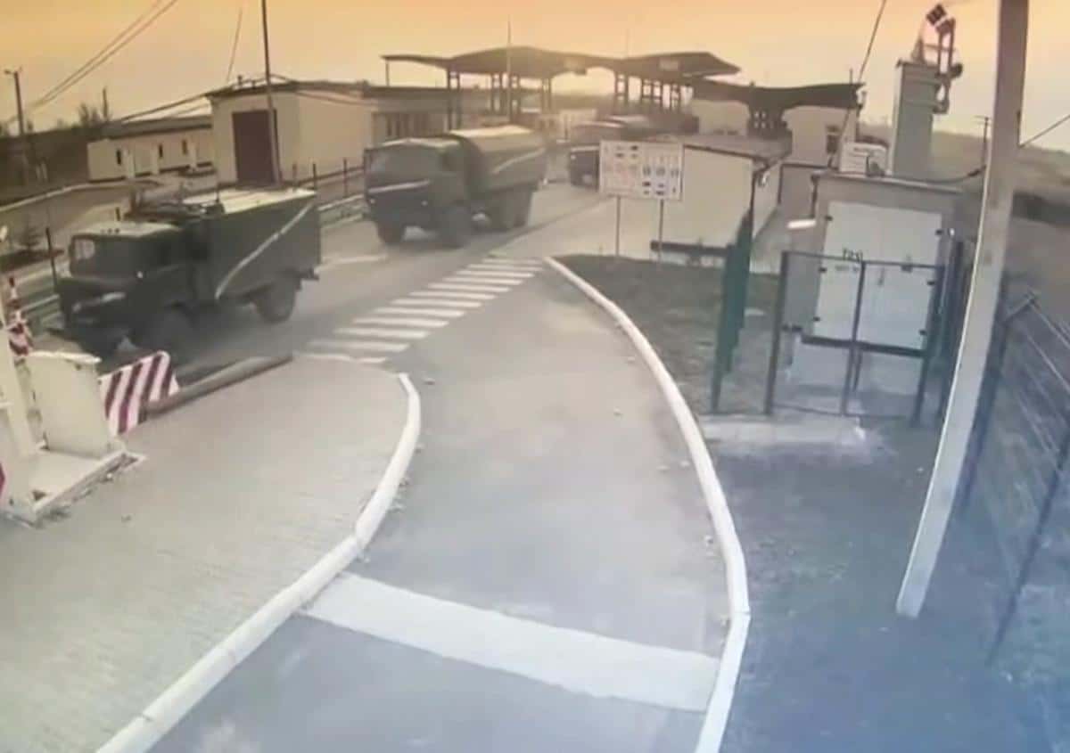 Foto: Russische Militärfahrzeuge an der Grenze zur Krim, Text: über dts Nachrichtenagentur