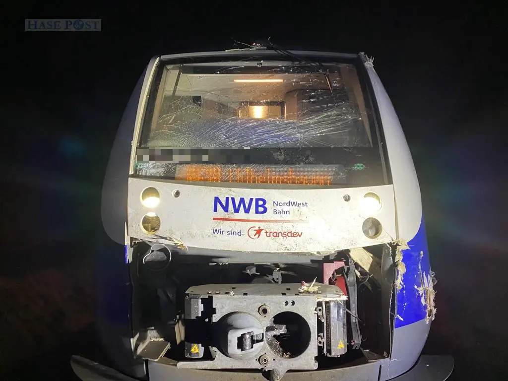In der Nacht von Sonntag auf Montag (7. Februar) kollidierte ein Zug der NordWestBahn auf der Fahrt von Osnabrück nach Wilhelmshaven gegen 00:30 Uhr mit einem umgestürzten Baum.