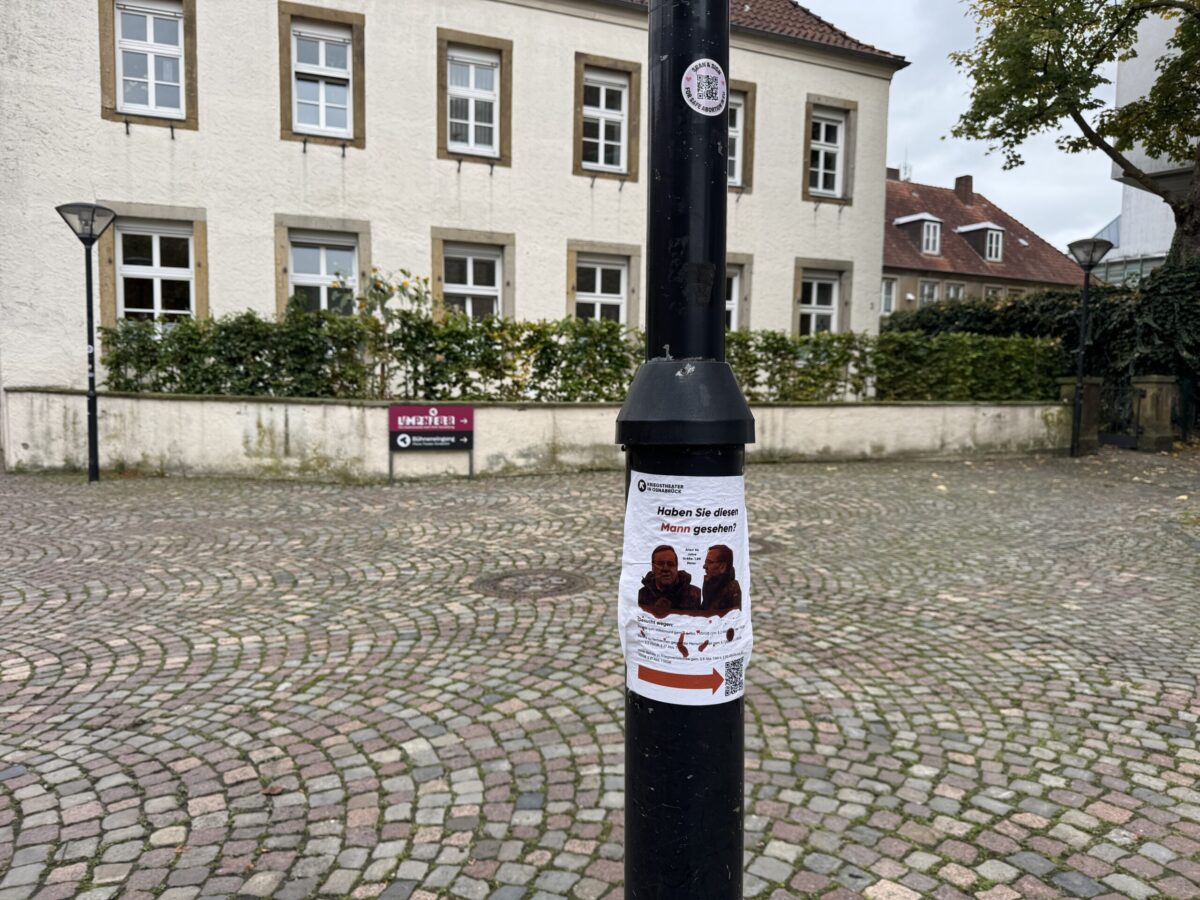 Ein Fake-Fahndungsplakat an einer Laterne vor dem Theater Osnabrück zieht derzeit die Blicke auf sich. In Anlehnung an das bekannte Theaterlogo prangt dort in großen Buchstaben der provokante Schriftzug: „Kriegstheater in Osnabrück“. Darunter: das Porträt von Verteidigungsminister Boris Pistorius, mit Angabe seines Alters und seiner Größe sowie die Frage „Haben Sie diesen Mann gesehen?“ – gefolgt von schwerwiegenden Vorwürfen.