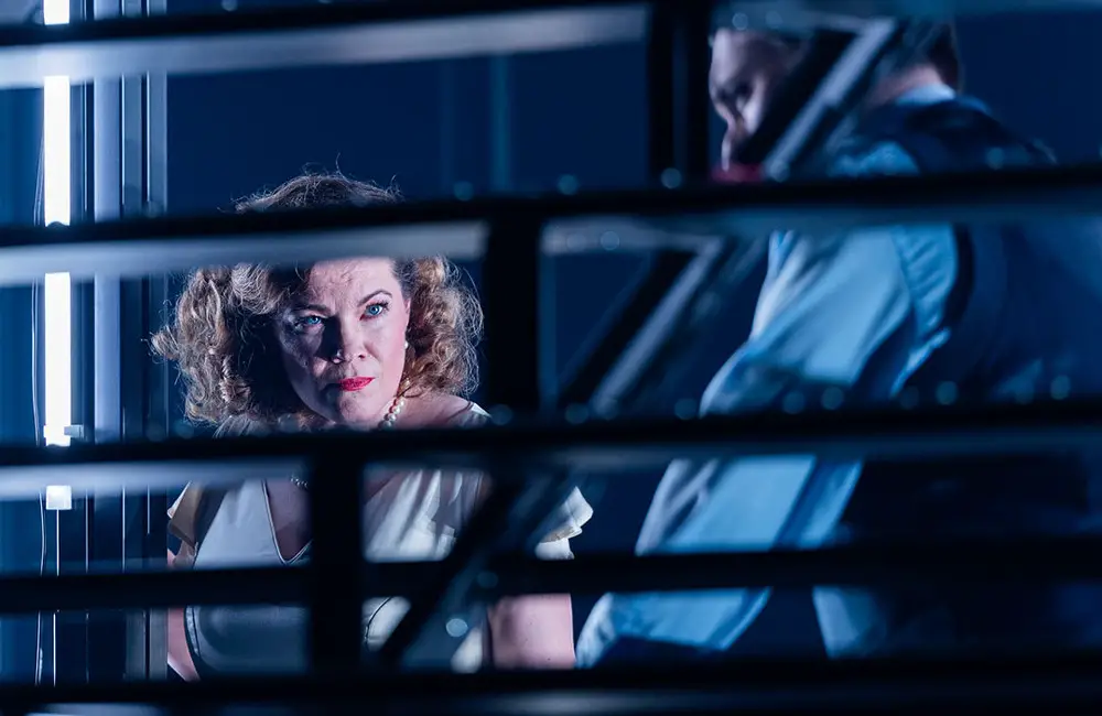 In dem Operndoppelabend „Ohne Blut / Herzog Blaubarts Burg“ treffen Täter und Opfer, Rache und Versöhnung aufeinander. Intendant Ulrich Mokrusch inszeniert am Theater Osnabrück eine packende Kombination der Kurzopern von Péter Eötvös und Béla Bartók. Die Inszenierung verbindet beide Werke so nahtlos, dass sie wie ein einziges erscheinen.