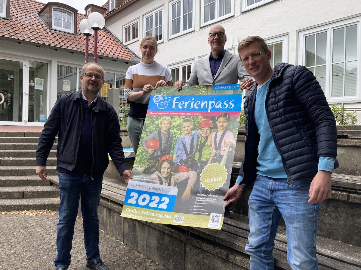 (von links) Mathias Owerrin, Michaela Teuber, Wolfgang Beckermann und Nils Bollhorn freuen sich auf das actiongeladene Ferienpassprogramm der Stadt. / Foto: Schulte