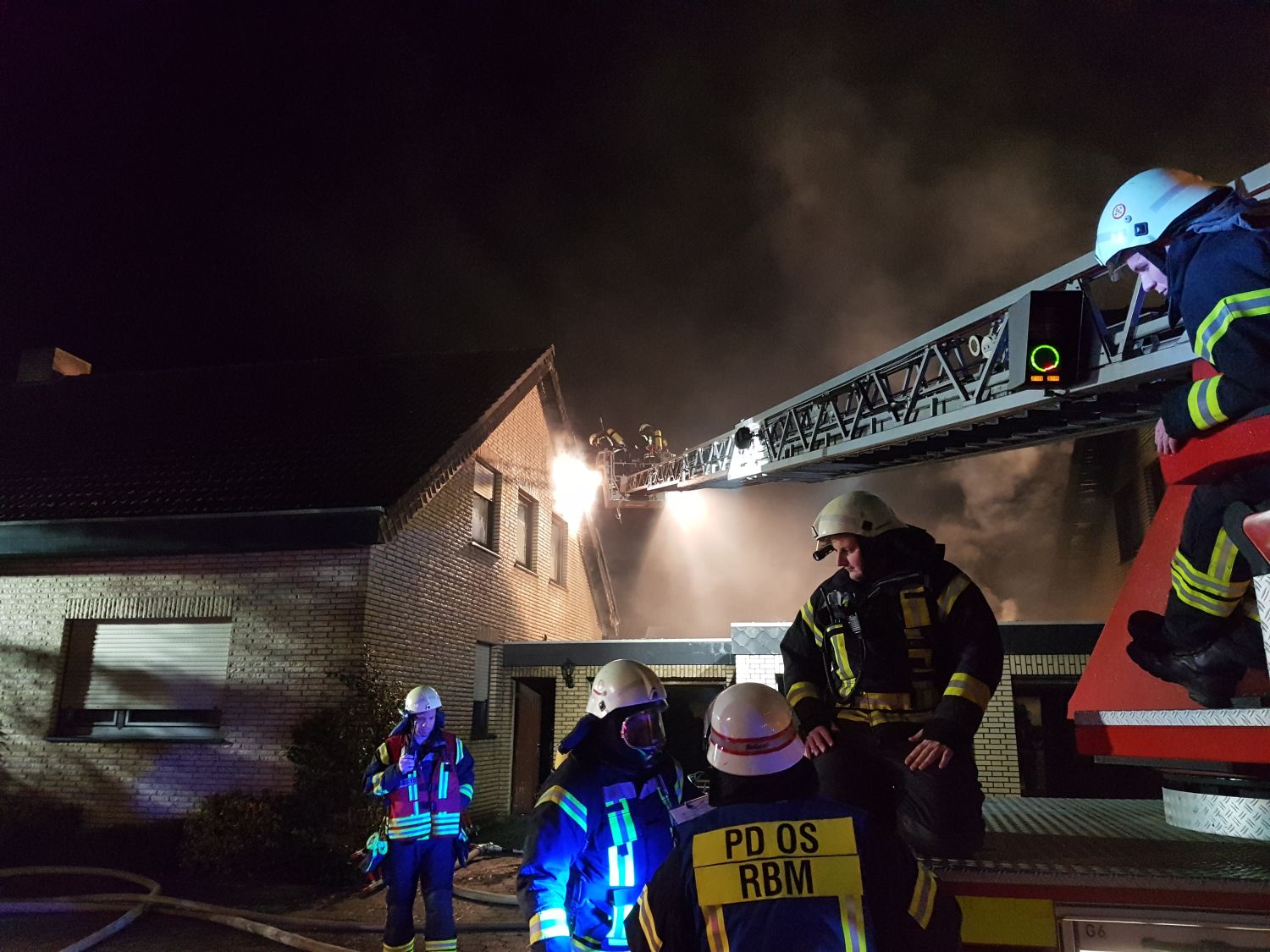 Als Andiel bei Eintreffen an der Einsatzstelle das genaue Ausmaß sah, forderte er darüber hinaus die Feuerwehr Bad Laer und die Drehleitereinheit aus Bad Rothenfelde zur Unterstützung an.
