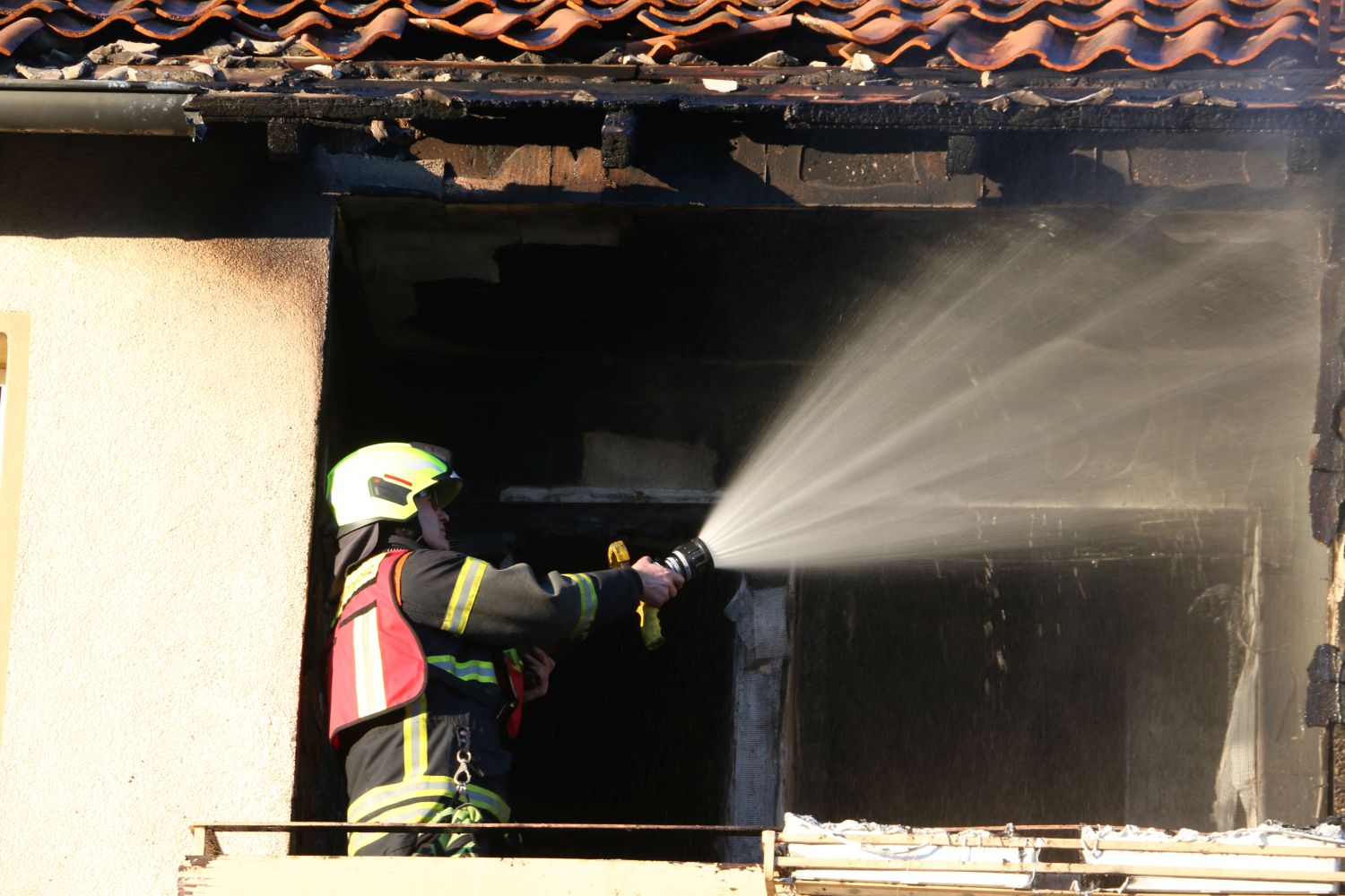 Mit Atemschutzgeräten gingen zwei Trupps der Feuerwehr im Innenangriff und über die Drehleiter zur Brandbekämpfung vor. So konnten sie das Feuer rasch löschen und eine weitere Brandausbreitung verhindern. Anschließend kontrollierten die Brandbekämpfer die Einsatzstelle mittels einer Wärmebildkamera, um versteckte Glutnester auszuschließen.