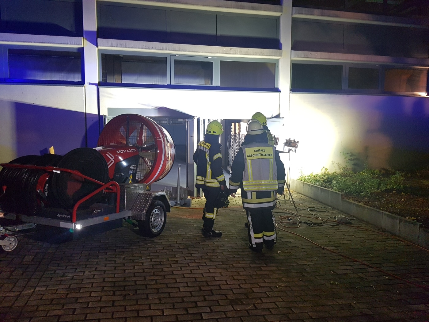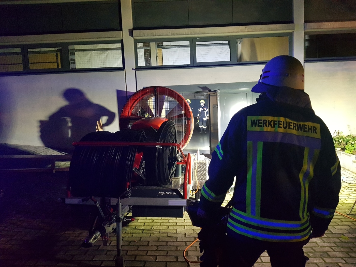 Durch die Kabel und Kunststoffe in der Verteilung entstand jedoch massiver Brandrauch, der die ganze Sporthalle in Mitleidenschaft gezogen hat. Die Werkfeuerwehr Georgsmarienhütte wurde deshalb zu Unterstützung angefordert, da sie einen großen Lüfter für Hallen besitzt, mit dem die Turnhalle vom Rauch befreit werden konnte.