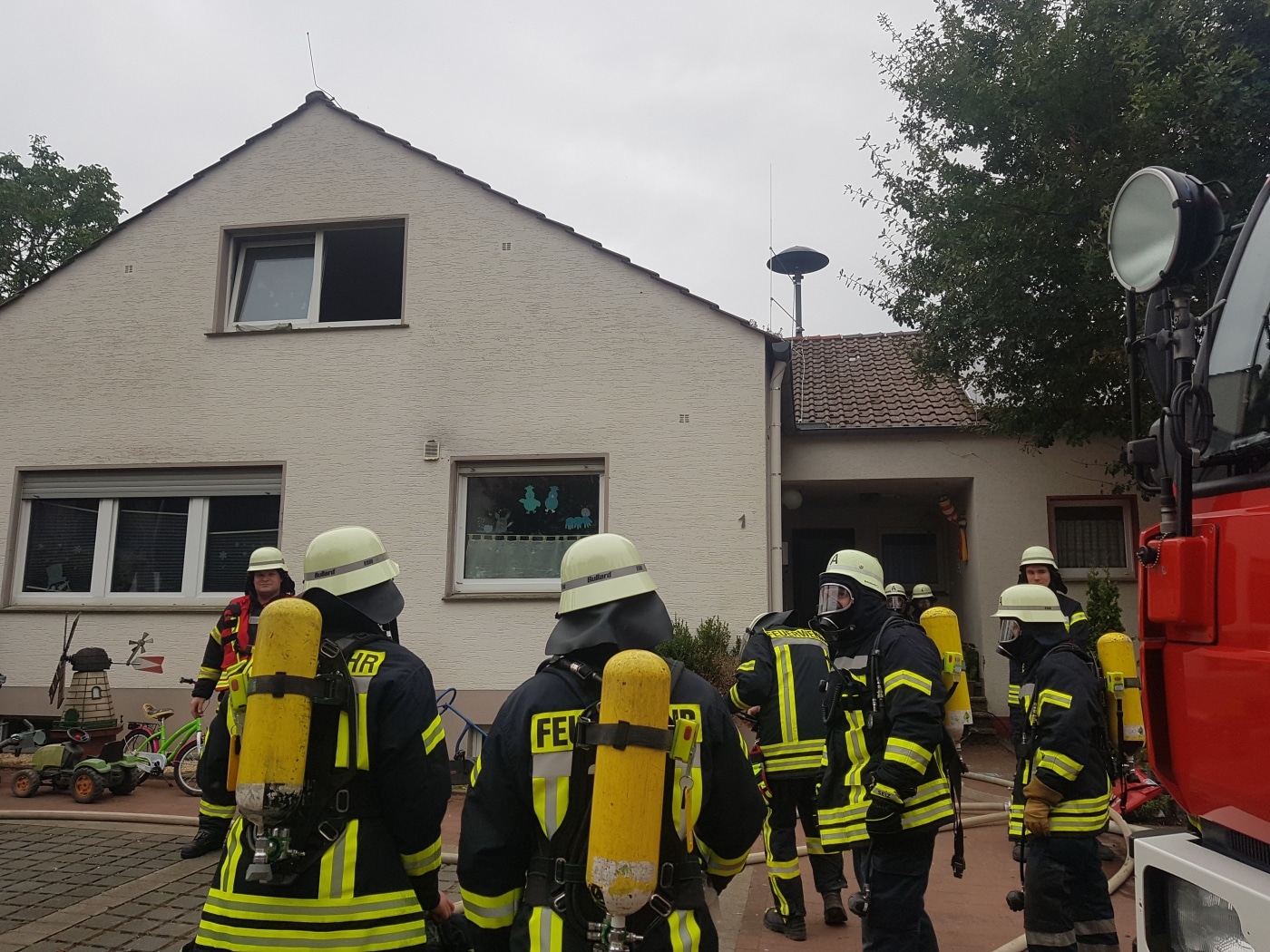 Vor Ort brannte es in einer Wohnung in einem städtischen Gebäude, in welchem auch die Ortsfeuerwehr untergebracht ist. Rauch kam aus Fenstern an zwei Hausseiten und hatte sich bereits im Gebäude ausgebreitet. Bis zum Eintreffen der Einsatzkräfte konnten sich die Bewohner, zwei Erwachsene und drei Kinder, jedoch ins Freie retten. Eine Person atmete dabei aber Rauchgase ein und wurde zur Behandlung vom Rettungsdienst in ein Krankenhaus gebracht. Eine Notärztin untersuchte auch die anderen Familienmitglieder vorsorglich.