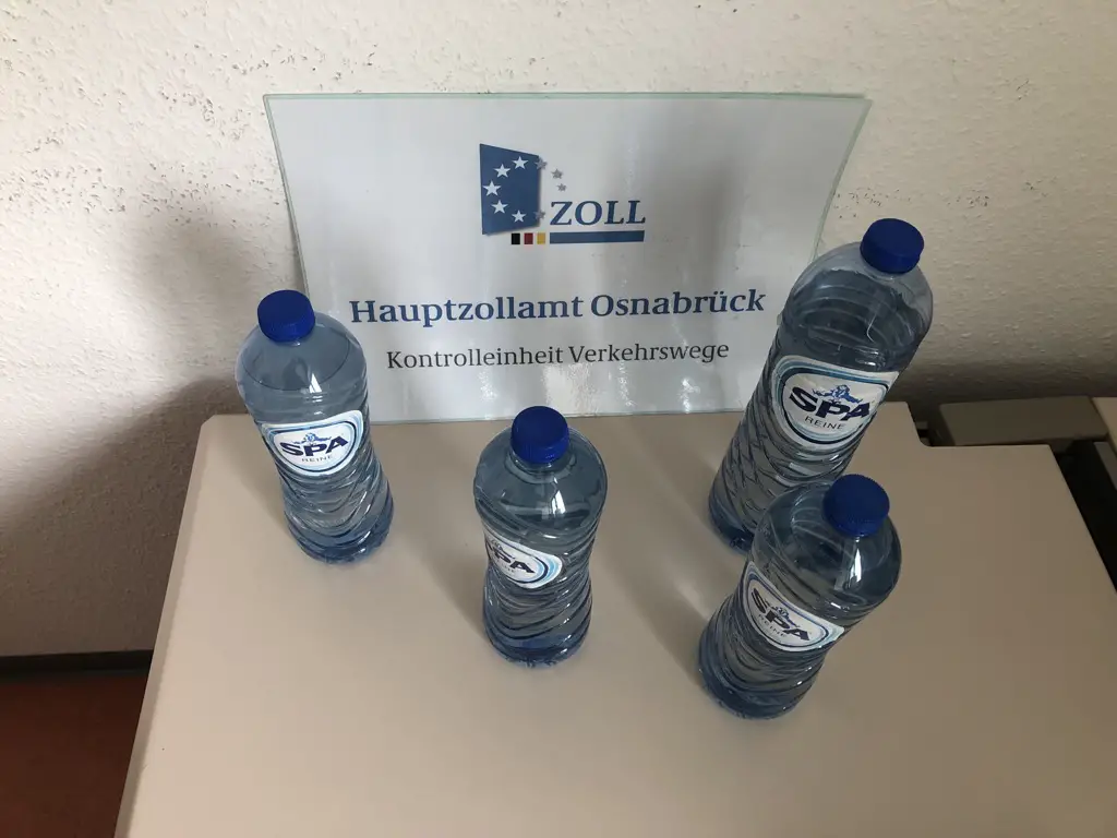 Titelbild: In den Wasserflaschen befanden sich vier Liter flüssiges Amphetamin./Foto: Hauptzollamt Osnabrück