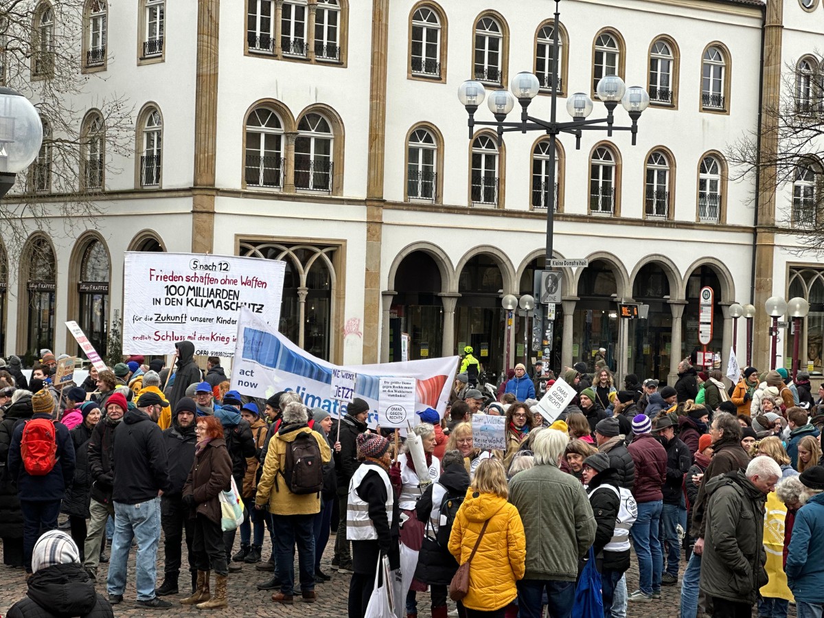 Am 14. Februar versammelten sich zahlreiche Aktivistinnen und Aktivisten in Osnabrück, um sich dem bundesweiten Klimastreik von Fridays for Future anzuschließen. Die Demonstration begann um 13:00 Uhr am Theatervorplatz und war Teil von mehr als 130 Aktionen, die im Vorfeld der Bundestagswahl auf die Dringlichkeit entschlossener Klimaschutzmaßnahmen hinweisen sollten.