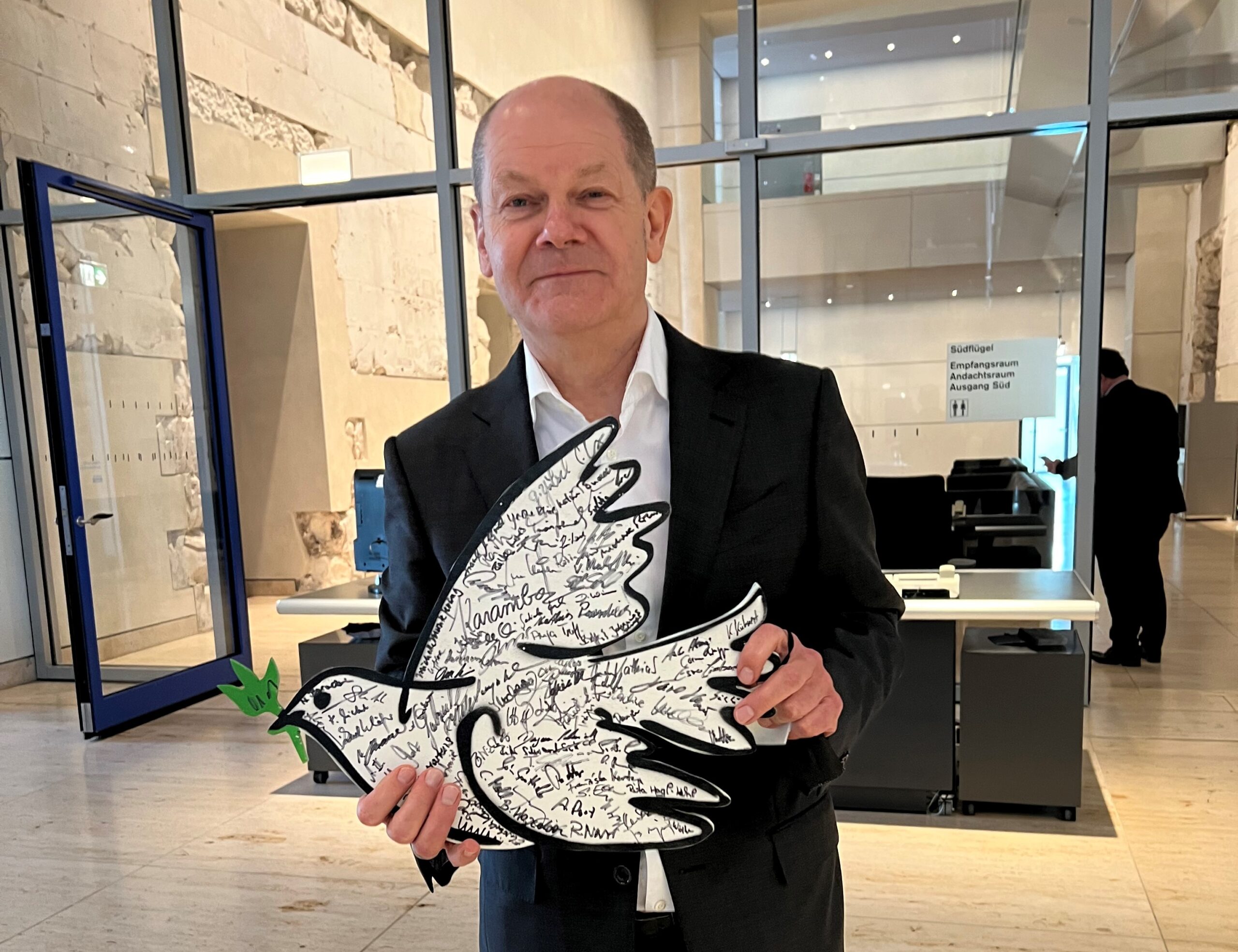 Olaf Scholz mit der Osnabrücker Friedenstaube / Foto: Bistum Osnabrück