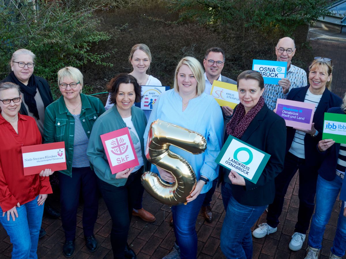 Ein doppelter Grund zum Feiern: Seit fünf Jahren beraten drei Babylotsinnen in den beiden Osnabrücker Geburtskliniken (Marienhospital, Klinikum) zu allen Fragen rund um Baby und Elternschaft – vor der Geburt ebenso wie danach. Jetzt steht fest: Das Angebot kann dank der außergewöhnlichen Kooperation für weitere fünf Jahre bis Ende 2030 fortgeführt werden.