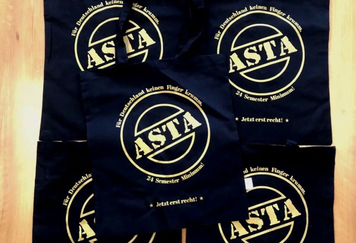 „Für Deutschland keinen Finger krumm, 20 Semester Minimum – das war der Spruch, der im Wintersemester 2018 die Erstibeutel des AStA zierte – Shitstorm inklusive.
