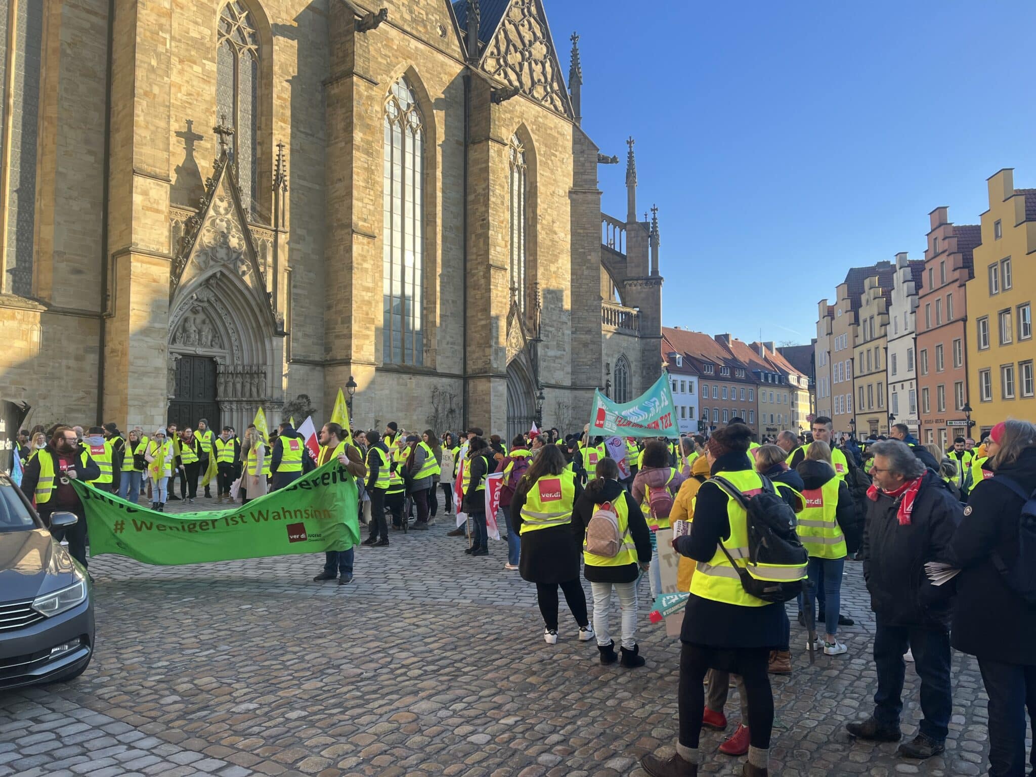 Am Dienstagmorgen (14. Februar) streikten rund 250 Arbeitnehmerinnen und Arbeitnehmer des öffentlichen Dienstes in der Osnabrücker Innenstadt. Ver.di organisierte den Warnstreik und rief auf, „laut zu sein“.