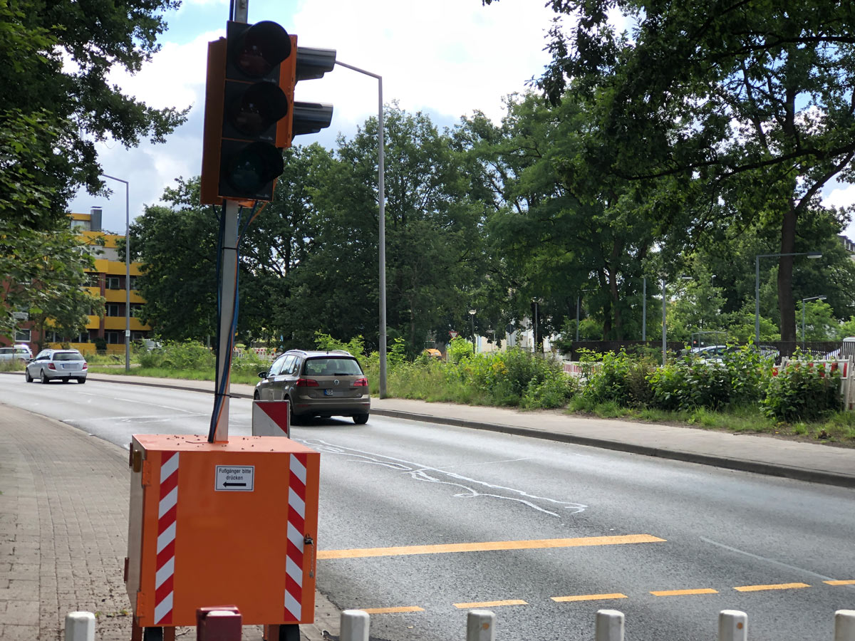 Bislang ist die Baustelle am Fürstenauer Weg noch klein und es reicht eine Baustellenampel