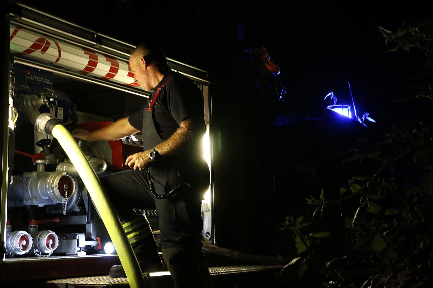 Mit zwei Strahlrohren und mehreren sich ablösenden Trupps unter Atemschutz gingen die Feuerwehrleute vor. Parallel bauten sie dazu eine Wasserversorgung aus Tanklöschfahrzeugen, einem separaten Wassertank auf dem Wechselladerfahrzeug der Berufsfeuerwehr und dem nächsten, etwas abseits gelegenen Hydranten auf. Aufgrund der knappen Verfügbarkeit von Trinkwasser in der derzeitigen Hitzeperiode, versuchte die Feuerwehr möglichst wenig Wasser aus dem örtlichen Trinkwassernetz zu entnehmen.