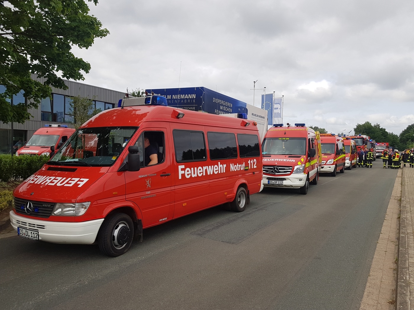 Mehrere Mitarbeiter klagten zudem über Beschwerden mit dem Verdacht, salzsäurehaltige Aerosole eingeatmet zu haben. Für den Rettungsdienst wurden daher hauptamtliche Kräfte aus benachbarten Rettungswachen sowie Freiwillige der DRK Kreisbereitschaft Melle, ein Organisatorischer Leiter und ein Leitender Notarzt unter dem Stichwort „Massenanfall von Verletzten“ zur Einsatzstelle geordert.