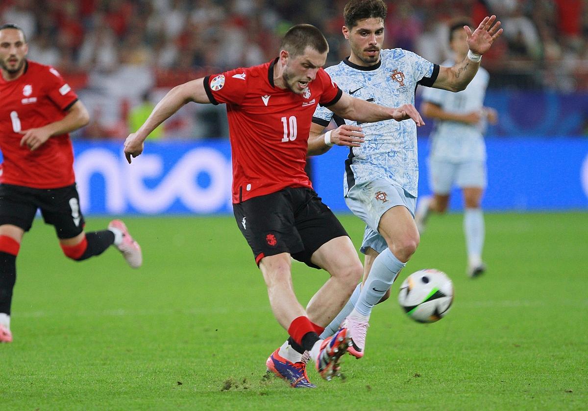 Georgien stellte bei der Partie in Gelsenkirchen sein Können unter Beweis, indem die Mannschaft bereits nach zwei Minuten durch ein Tor von Khvicha Kvaratskhelia in Führung ging. Trotz engagierter Angriffe Portugals konnte der Außenseiter seine Führung halten und gab den Portugiesen bis zum Spielende kaum eine Chance. Den Sieg sicherte Georgien schließlich durch ein Elfmetertor von Georges Mikautadze in der 56. Minute.