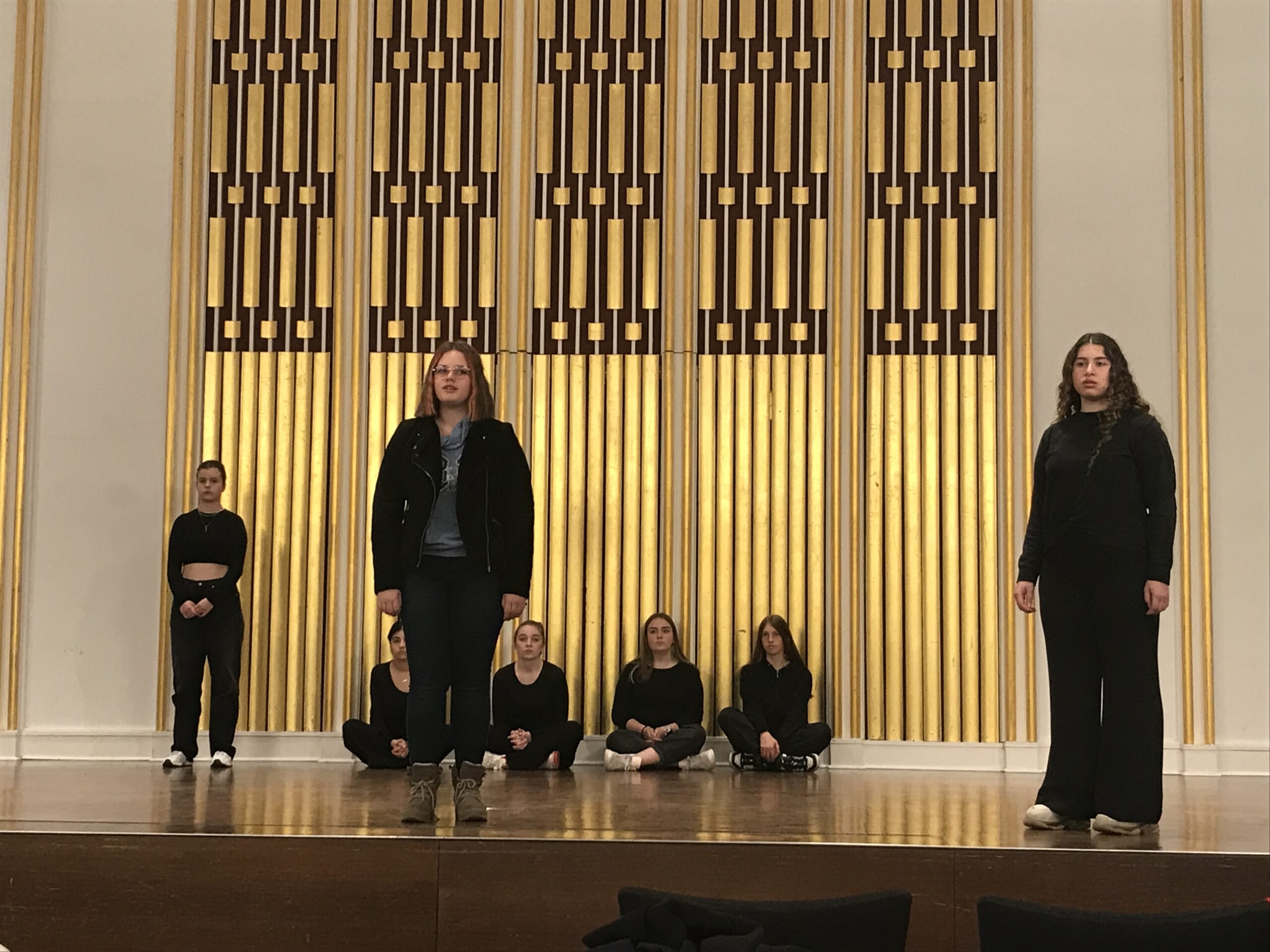 Schülerinnen der Gesamtschule Schinkel proben im Schloss für die Gedenkfeier an die Reichspogromnacht. / Foto: Burrichter