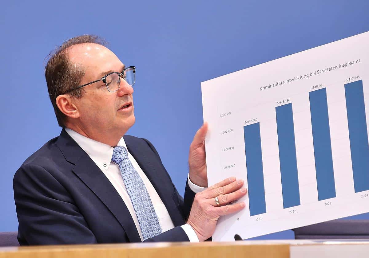 Insgesamt hat die Polizei im Jahr 2025 bundesweit rund 5,5 Millionen Straftaten registriert, das entspricht einem Rückgang von 5,6 Prozent im Vergleich zum Vorjahr. Auch die Zahl der Tatverdächtigen insgesamt ist um 5,9 Prozent auf etwa 2,05 Millionen gesunken. In den Zahlen schlägt sich die Teillegalisierung von Cannabis aus 2024 nieder, es ist aber selbst dann noch ein Rückgang vorhanden, wenn Straftaten im Zusammenhang mit Cannabis herausgerechnet werden (-4,7 Prozent).