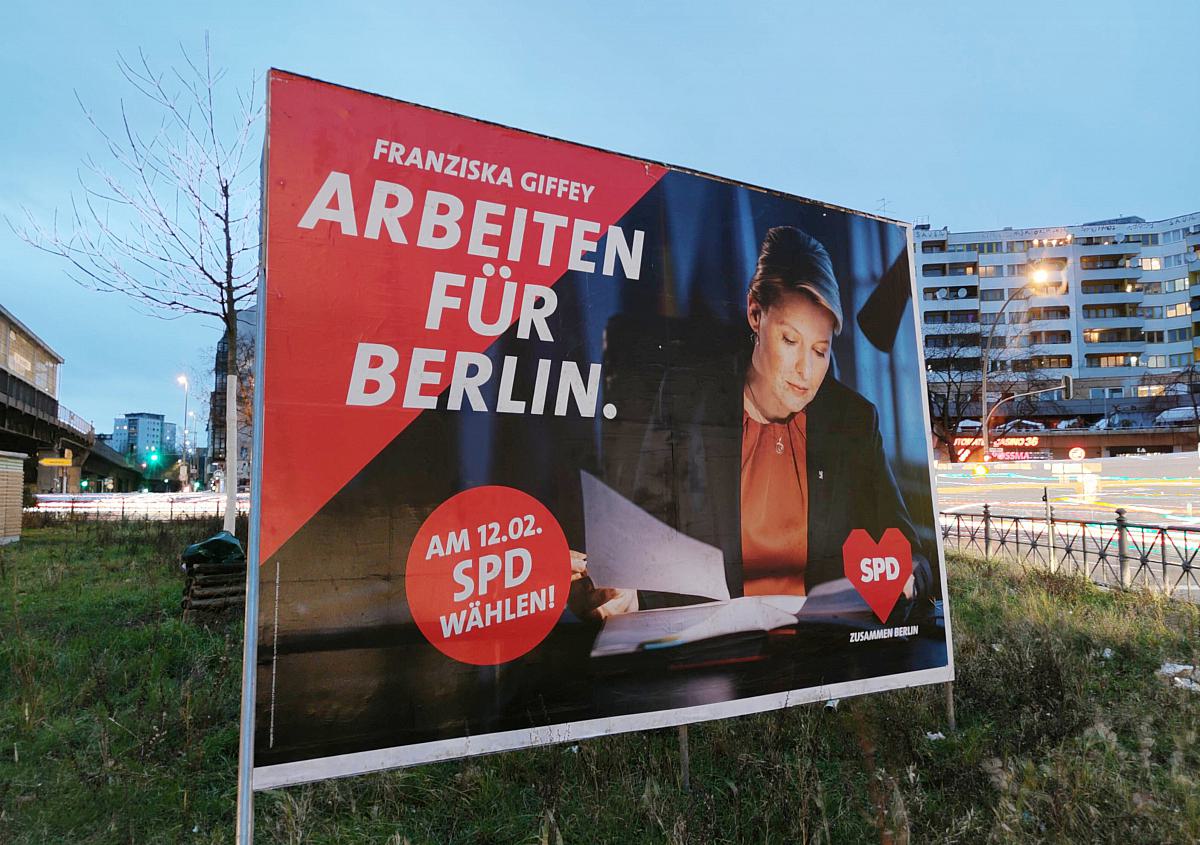Foto: SPD-Plakat zur Wiederholungswahl in Berlin am 12.02.2023, über dts Nachrichtenagentur