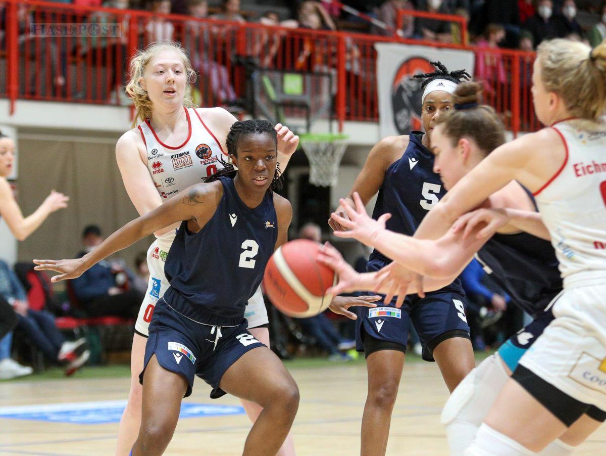 Frieda Bühner und Eva Rupnik, die Frauen aus der jüngeren Garde der Panthers waren es, die im zweiten Viertel mit schön herausgespielten Dreiern die Führung ausbauten. Nachdem Jill Townsend kurz vor der Halbzeit ebenfalls mit zwei Dreiern glänzte, waren es Merit Brennecke und Victoria Poros die sich ins Scoreboard eintrugen. Zur Halbzeit steht es komfortable 42:19 für die Panthers-Frauen.