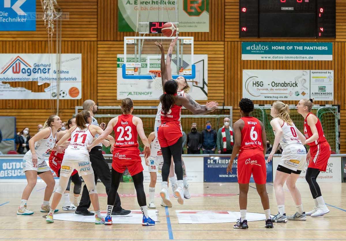 Nach dem Pokal-Aus kassierten die Panthers auch in der 1.Bundesliga gegen die stark aufspielenden Frauen aus Herne im „datos-Home of the Panthers“ (OSC Halle) eine schmerzliche Niederlage. Vor ca. 170 Zuschauer unter 2Gplus Regeln starteten die Panthers mit dem ersten Treffer des Spiel durch Kapitänin Jenny Strozyk. Herne verteidigte bis zur 8. Minute im 1. Viertel sehr stark bis Jill Townsend die Maschen traf und Samantha Fuehring mit zwei Dreiern in Folge zum 17:13 den Zwischenstand zum Ende des 1. Viertels für die Panthers markierte.