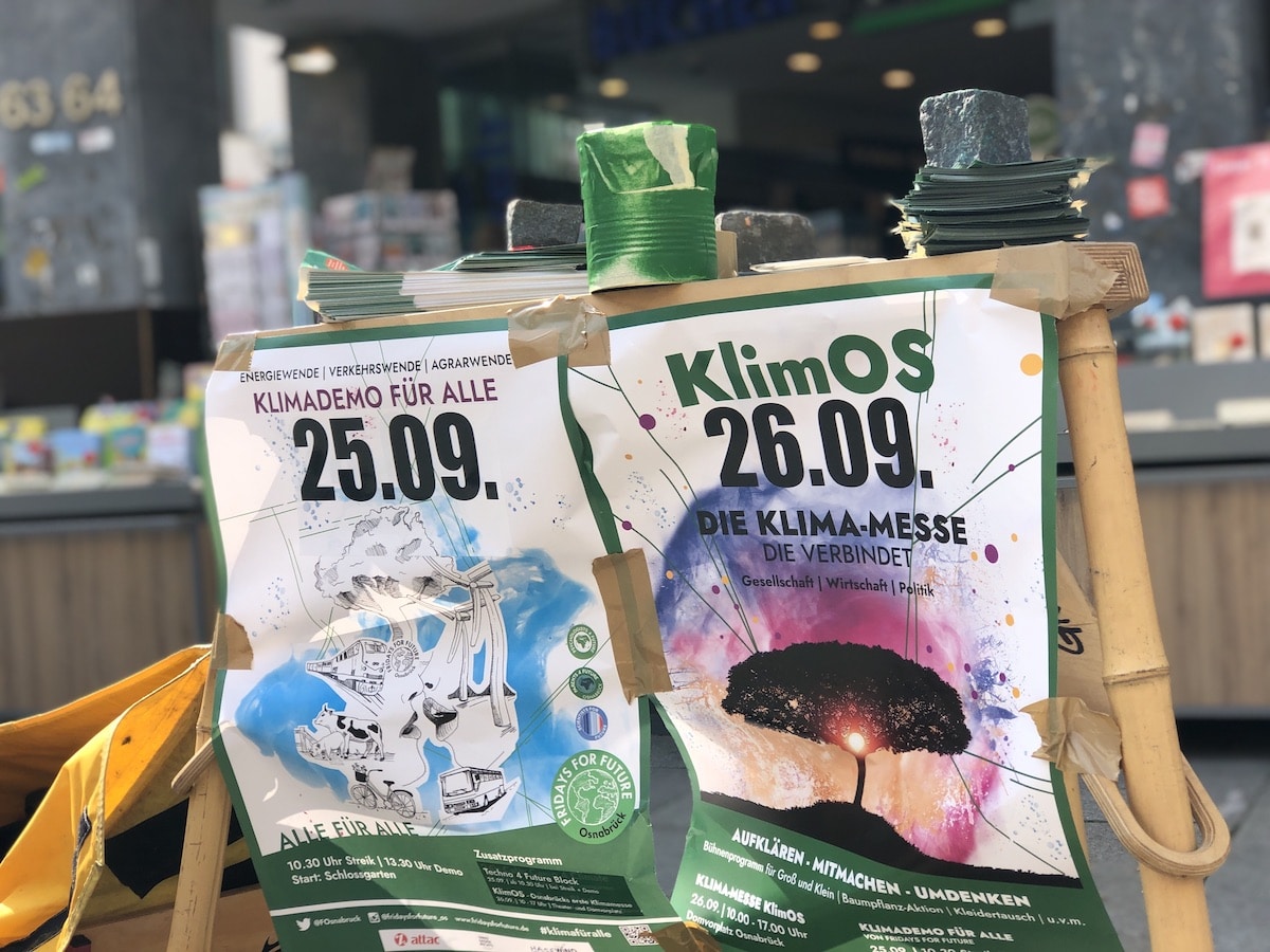 Am Tag nach der Globalen Klimademo lädt Fridays for Future in Zusammenarbeit mit weiteren Organisationen darüber hinaus zur ersten Osnabrücker Klimamesse ein. Sie findet diesen Samstag von 10:00 bis 17:00 Uhr auf dem Domvorplatz statt und trägt den Namen „KlimOS – Die Klima-Messe die verbindet“.