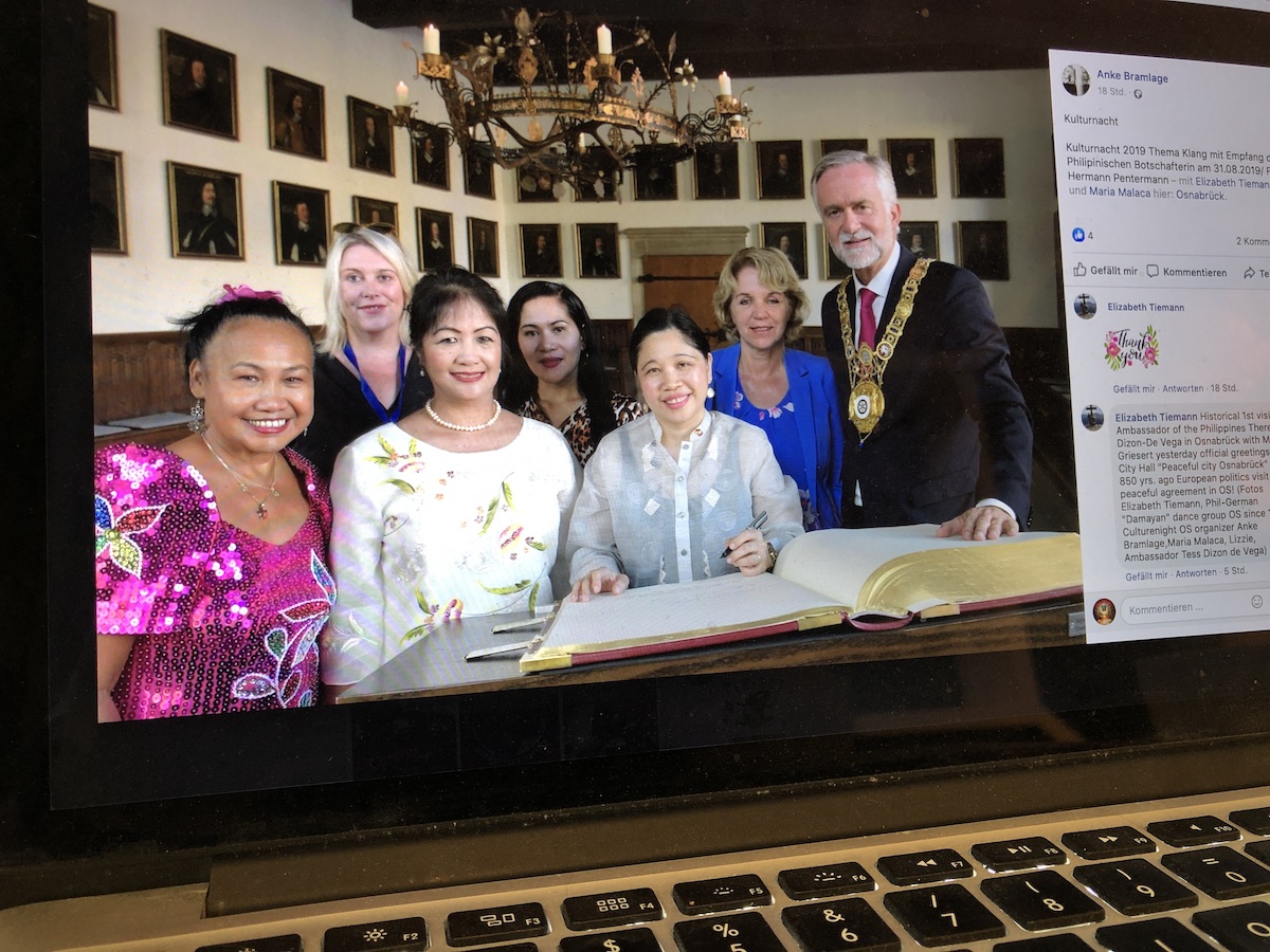 Hätte nicht Anke Bramlage, die auch die Kulturnacht verantwortet, einige Bilder auf ihrem privaten Facebook-Account (siehe Screenshot im Titel) veröffentlicht, wäre dieser hohe Besuch einer offiziellen Vertreterin des Landes, in dem nach Angaben von Amnesty International inzwischen weit mehr als 6.000 Menschen von der Polizei oft willkürlich ermordet wurden, wohl „unter dem Radar“ geblieben.