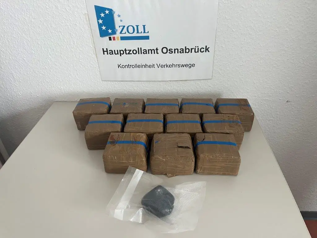 Bei einer Fahrzeugkontrolle am Montagvormittag (06.05.) machten Zöllner aus Osnabrück einen bedeutenden Fund: Sie stellten mehr als elf Kilogramm Haschisch sicher, das einen geschätzten Wert von rund 100.000 Euro auf dem Schwarzmarkt hat.