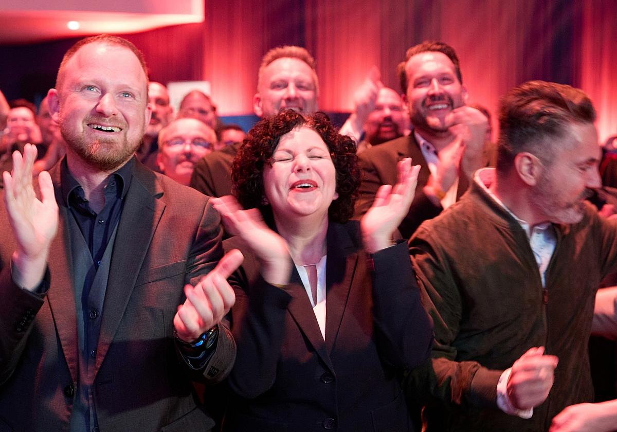 18-Uhr-Prognose auf BSW-Europawahlparty am 09.06.2024 / via dts Nachrichtenagentur