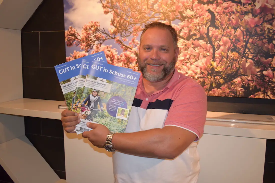 Insgesamt 5 Mitarbeiter kümmern sich seit Januar um die Gestaltung der neuen Zeitschrift, die von der Agentur „alles bestens – Schäfer, Events & Medien“ herausgegeben wird. Die Agentur arbeitet viel mit Pflegeeinrichtungen zusammen und bemerkte, dass ein regionales Medium für ältere Menschen fehlt. Eigentlich hätte die erste Ausgabe bereits Anfang April erscheinen sollen, doch das Coronavirus vereitelte die Pläne der Herausgeber. „Corona hat uns wehgetan, wir konnten nicht wie gewohnt arbeiten und viele Werbepartner mussten ihre Geschäfte vorübergehend schließen. Wir haben uns daher entschlossen, die Erstausgabe in den Mai zu verlegen. Unter normalen Umständen hätte das Magazin sicherlich 20 Seiten mehr Umfang gehabt,“ so Christian Schäfer. Trotz aller Schwierigkeiten wurde „Gut in Schuss 60+“ sehr gut angenommen. Ursprünglich sollte das Magazin nur zweimal im Jahr mit einer Auflage von 10.000 Exemplaren erscheinen, jetzt plant man mit 4 Ausgaben pro Jahr, die nächste soll schon im Juli oder August veröffentlicht werden. „Gut in Schuss 60+“ ist kostenlos und wird in den 25 Filialen der Bäckerei „Coors“, bei allen Werbepartnern der jeweiligen Ausgabe sowie in ausgewählten Apotheken und Arztpraxen ausliegen. Alle Ausgaben können auch Online unter www.gut-in-schuss.de gelesen werden.