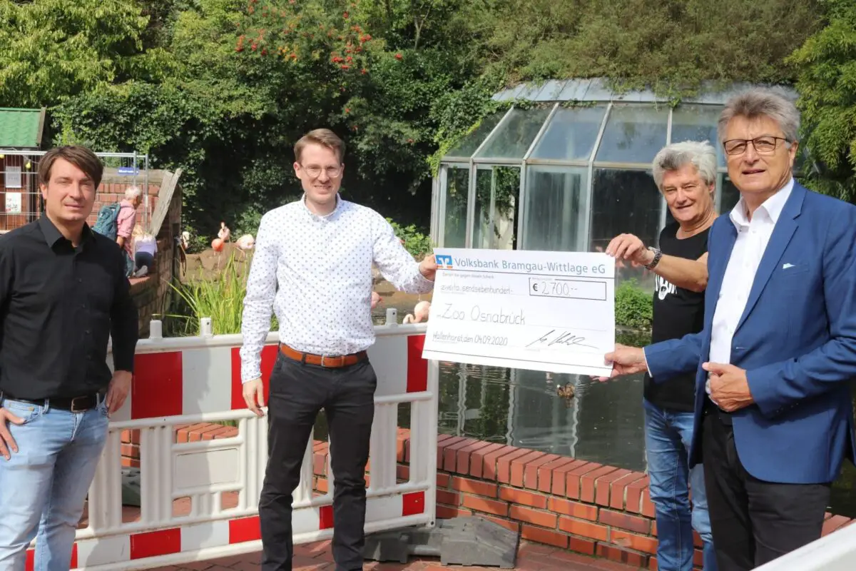 Als der Zoo für fast acht Wochen wegen der Pandemie im Frühjahr schließen musste, war schnell die Pfand-Aktion ins Leben gerufen. „Unsere Kunden haben uns sogar per E-Mail mitgeteilt, dass sie es toll finden, dass wir und sie damit den Zoo unterstützen können.“ Insgesamt 2.700 Euro kamen so zusammen. Diese übergaben Marc Kuhlmann und Mitarbeiter Stefan Keil vergangene Woche symbolisch mit einem Spendenscheck an Zoopräsident Dr. E.h. Fritz Brickwedde und an Zoogeschäftsführer Andreas Busemann.