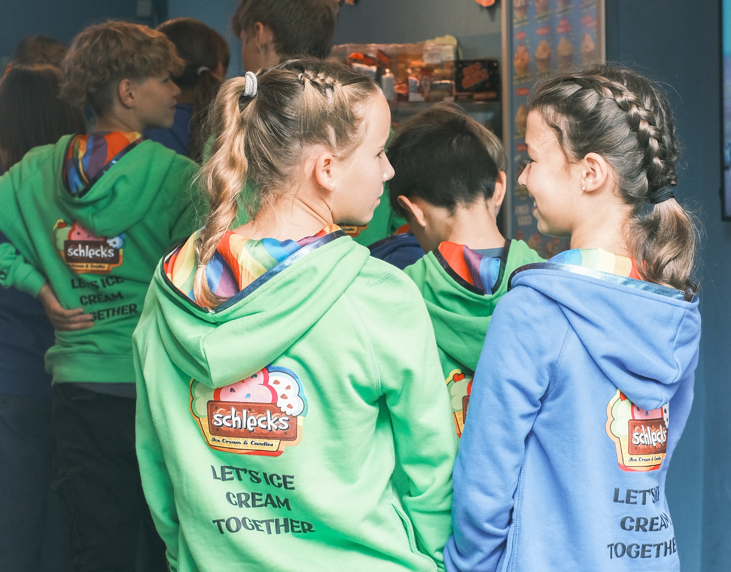 Darüber hinaus gibt es gemeinsam mit dem Lable „Together we are stronger“ entworfene Kinder-Hoodies, die ebenfalls im Laden erworben werden können. Von jedem verkauften Hoodie gehen auch hier 5 Euro an die Arche. „Die Hoodies sind ein komplettes Non-profit-Produkt, an dem nichts verdient werden soll“, versichert Florian Stisser von Schlecks.