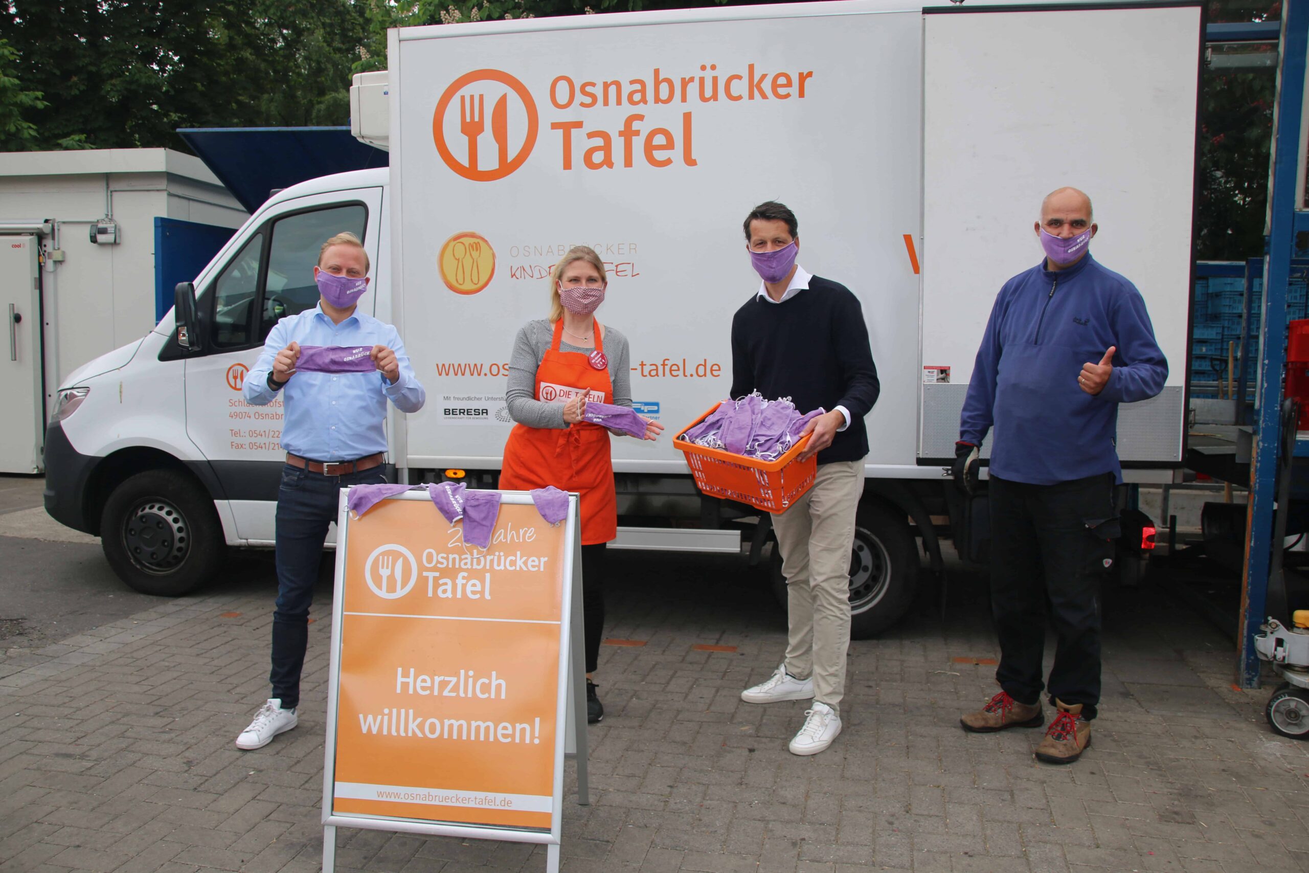 Im Rahmen einer Spendenübergabe wurden am Mittwoch, den 20. Mai 2020, Schutzmasken in „VfL-Lila“ an die Osnabrücker Tafel überreicht. Die Spende stammt von der Osnabrücker Agentur Barlag.