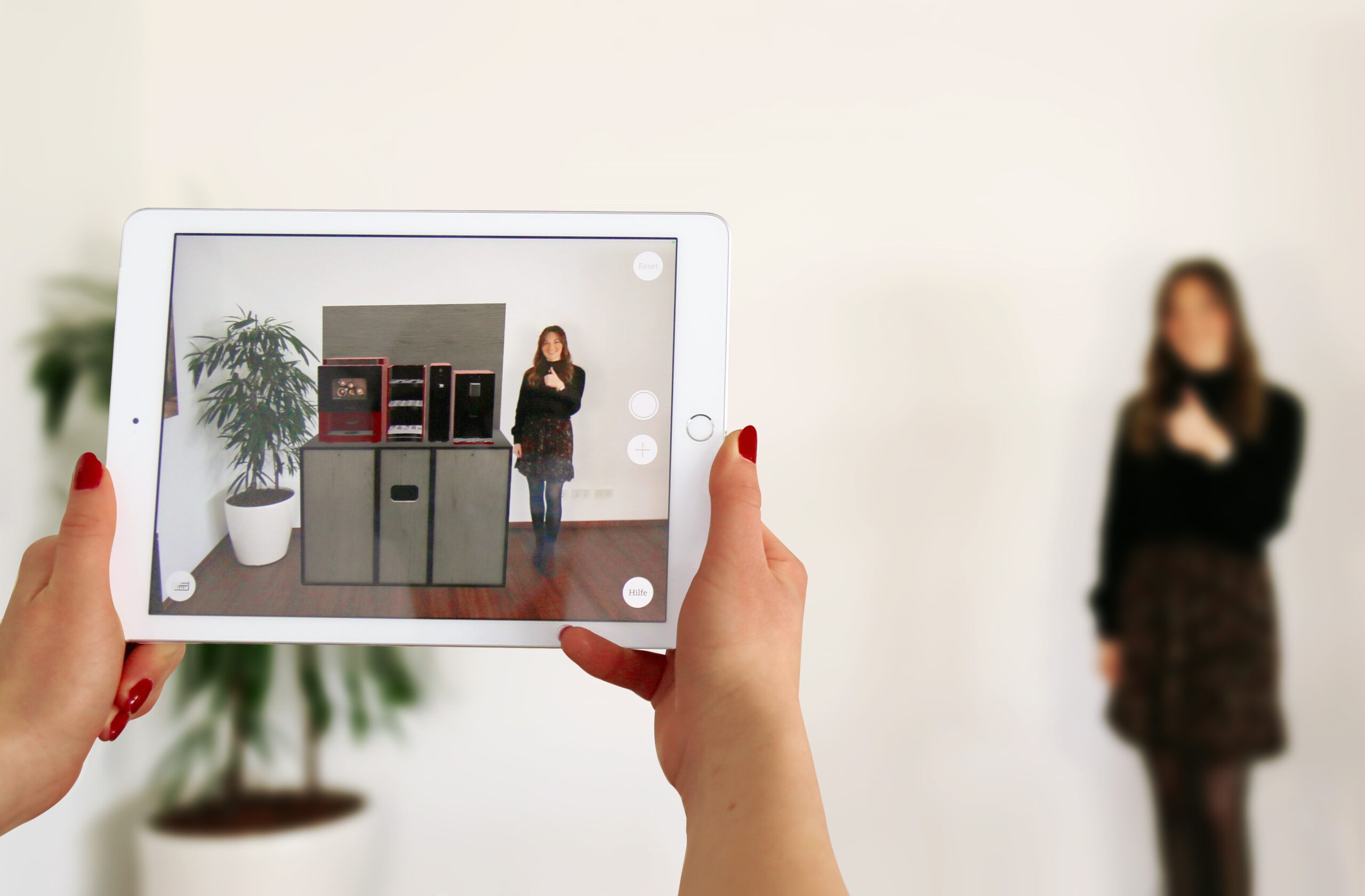 Kaffee Partner, der Marktführer für professionelle Kaffeesysteme, hat die Augmented Reality App fürs Tablet zusammen mit der Agentur DIE ETAGEN GmbH als innovative Unterstützung des Vertriebs entwickelt. Die Darstellung der 3D-Kaffeemaschinen in Originalgröße beim Kunden ist neu im Vertriebsprozess und gestaltet den zukünftigen Ablauf besonders effektiv, innovativ und vernetzt. Die App ermöglicht es, individuell für den Kunden, die gewünschte Farbe aus über 180 Maschinenlacken einzustellen, den Gerätestandort zu visualisieren, Zubehör zu wählen und Positionierungen im Raum leicht vorzunehmen. Eine integrierte Maßband-Funktion erleichtert es im Vertriebsgespräch, Informationen wie die Entfernung zum Wasseranschluss direkt an den Monteur zu übermitteln und so Montagefehler zu minimieren. Die Foto-Funktion dokumentiert für den Kunden und den Vertriebsmitarbeiter die besprochenen Inhalte. Eine Bestellung kann dann ohne weitere Vertriebsschritte vor Ort erfolgen.