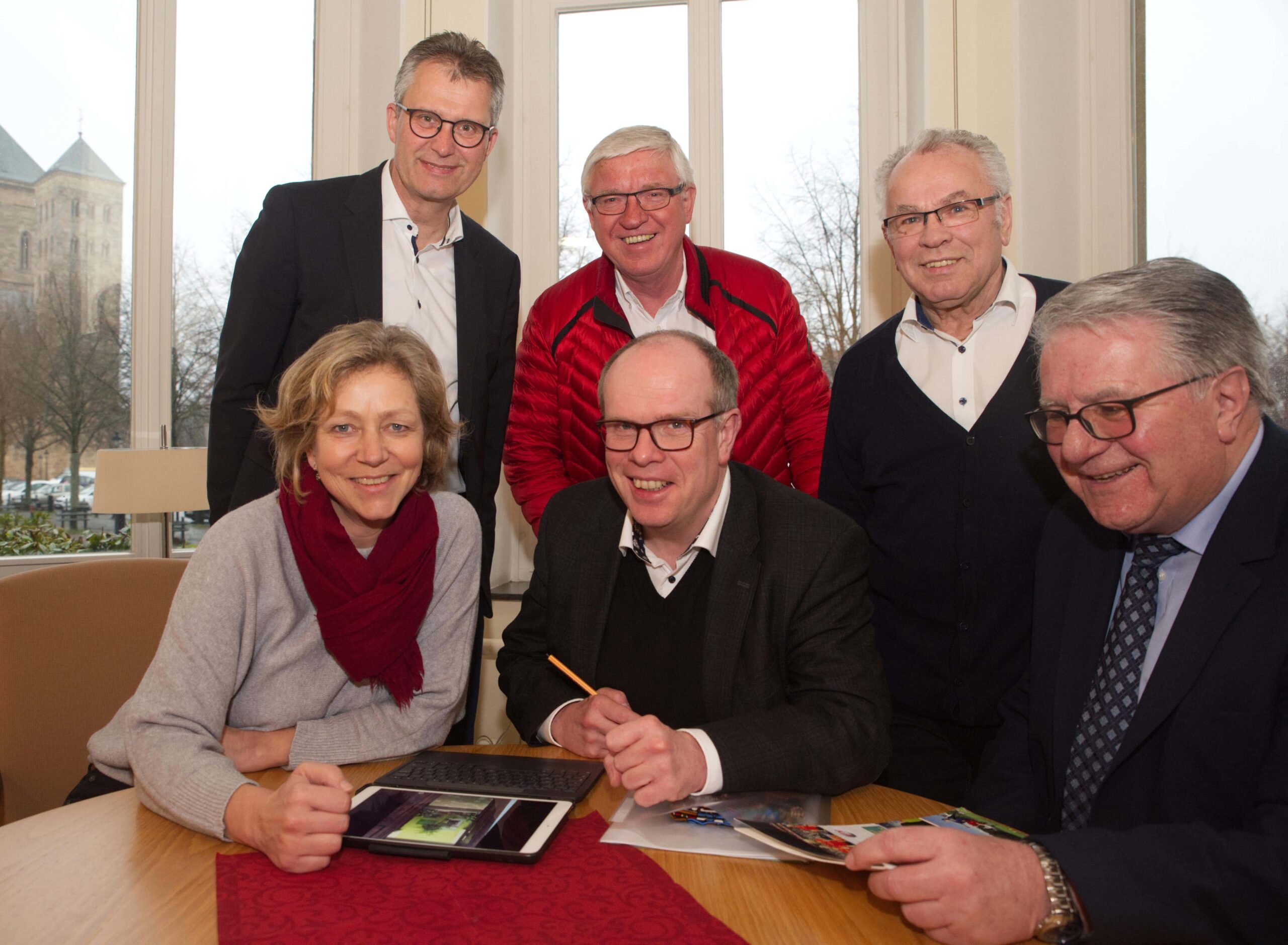 Der Beirat des Caritas-Stiftungsfonds Hilfe für Menschen in Not im Senegal blickt auf ein sehr erfolgreiches Jahr zurück. Weihbischof Johannes Wübbe (Mitte) ließ sich von den Mitgliedern des Beirates erklären, wie die Spendengelder eingesetzt werden. Annette Niermann, Günter Sandfort, Hubert Börger, Clemens Seelmeyer und Helmut Buschmeyer (von links) konnten dies mit vielen Fotos illustrieren. / Foto: Caritas, Roland Knillmann.