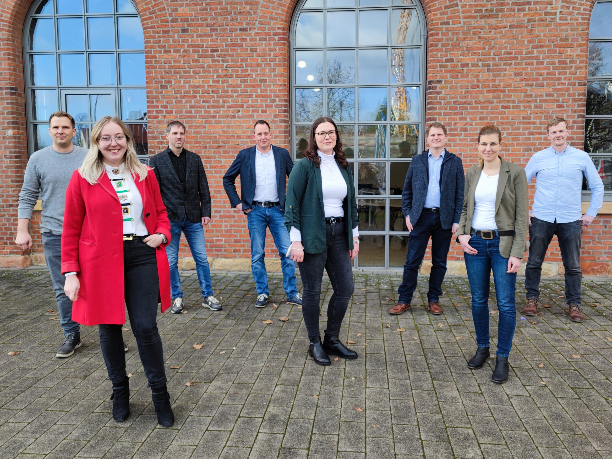 Haben erfolgreich das Pilotprojekt abgeschlossen: Sören Schierbaum, Victoria Reker, Stefan Thomas, Maik Wigger, Sabrina Ahaus, Daniel Niemeyer, Marielle Lonnemann, David Gründker. Es fehlt: Frederike Meyer /Foto: Handwerkskammer Osnabrück-Emsland-Grafschaft Bentheim