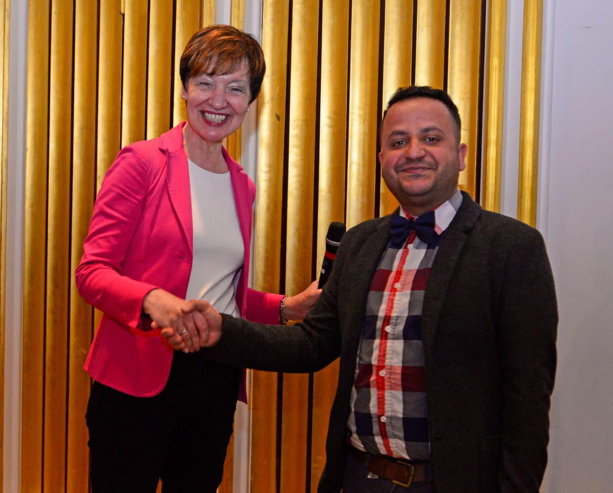 Der Preisträger konnte die Auswahlkommission jedoch nicht nur mit seinen beeindruckenden akademischen Leistungen, sondern auch mit seinem außerordentlichen ehrenamtlichen Engagement überzeugen. Bereits in Syrien war er Mitglied im Komitee für Bevölkerungsschutz und Katastrophenhilfe sowie in verschiedenen Positionen beim Hohen Flüchtlingskommissar der Vereinten Nationen (UNHCR) und dem syrisch-arabischen roten Kreuz (SARC) tätig. Bei diesen Organisationen engagierte er sich in der Unterstützung von Kindern mit kriegsbedingten Traumata. Auch beim schwedischen Roten Kreuz in Västerås widmete sich Fadi Hasan weiterhin der Zusammenarbeit mit Menschen mit Fluchterfahrung und half zusätzlich bei der Übersetzung vom Englischen ins Arabische und umgekehrt.