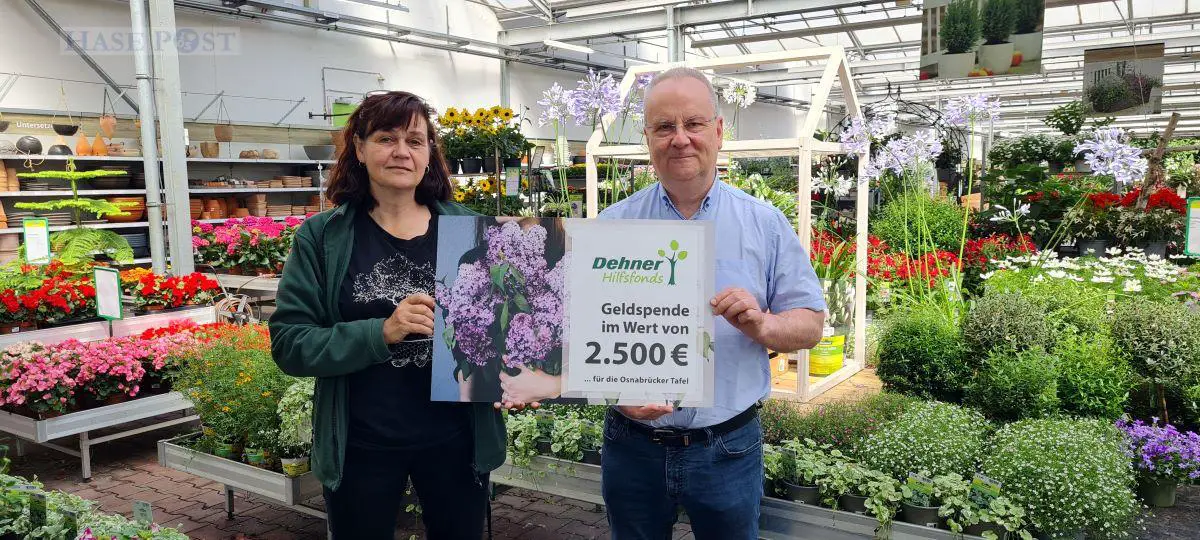 Der „Dehner Hilfsfonds für Menschen in Not“ unterstützt dieses Jahr die Osnabrücker Tafel mit 2.500 Euro. Die Spende ist Teil einer Hilfsaktion für Tafeln und andere soziale Organisationen in ganz Deutschland und Österreich. Die gemeinnützige Initiative der größten Garten-Center-Gruppe Europas zieht damit ihre alljährliche Weihnachts-Spendenaktion vor.