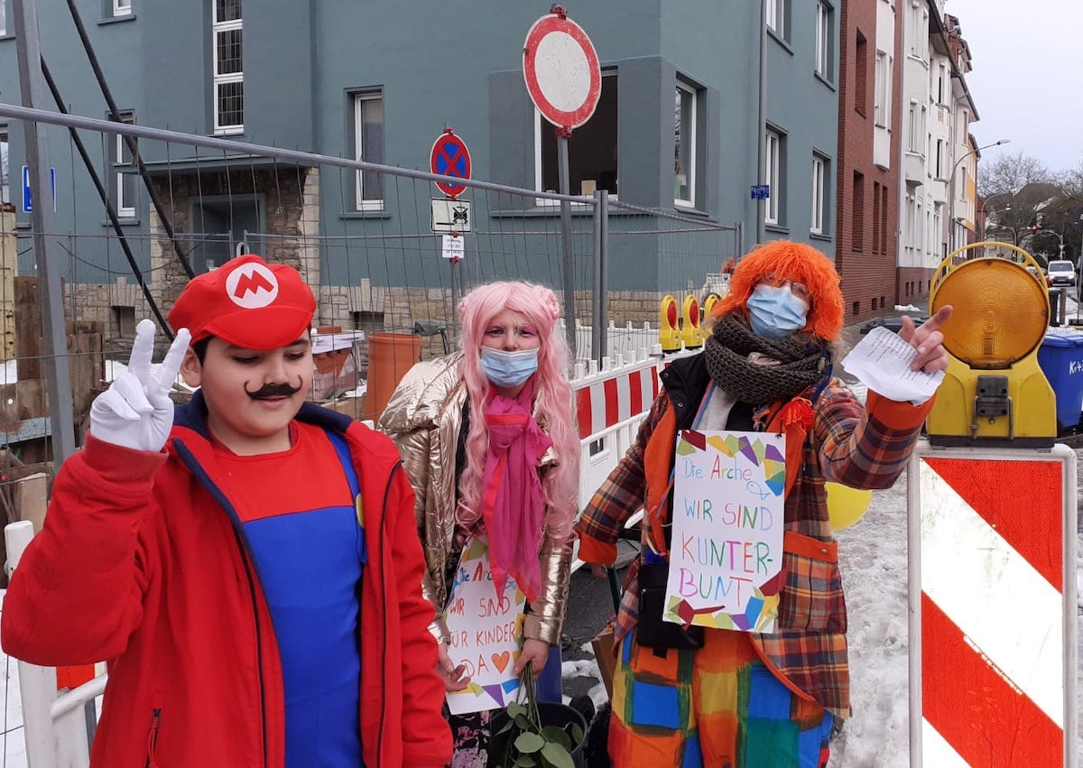 „Für die Kinder ist die Zeit während der Corona-Pandemie und den damit verbundenen Maßnahmen trist genug. Sie können keine Freunde treffen, eingeschränkter Schulbesuch, kein Rosenmontagsumzug. Die Arche wollte dagegenhalten – mit Spass und bunten Kostümen den Alltag aufbrechen, aus Rollen ausbrechen und zeigen, dass das Leben viele Farben und Facetten hat – selbst dann, wenn die Sonne gerade nicht scheint“, erzählt Koopmann. Zu diesem Zweck erarbeiteten sie ein Konzept, das sowohl Social-Distance, als auch Nähe zu den Familien verbindet. „Wir sind alle kunterbunt – und das ist gut so!“, so die Devise des Teams.