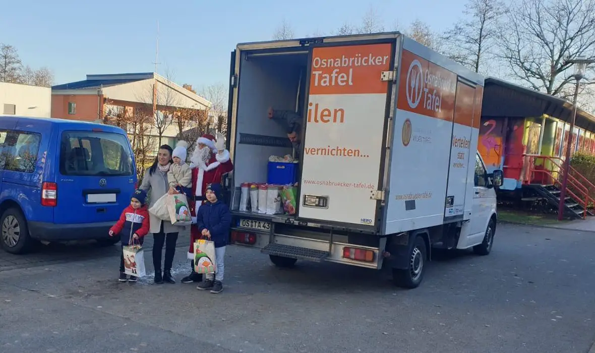 Am ersten Weihnachtstag wurden die Geschenke mit dem Tafelauto an Mädchen und Jungen aus einkommensschwachen Familien verteilt. Der Weihnachtsmann half an diesem Tag bei der Tafel Osnabrück aus und übergab den Tafelkindern die Präsente. „Es war eine sehr schöne Weihnachtsaktion. Man hat gemerkt, wie sehr sich die Kinder über die Geschenke gefreut haben“, sagte Hermann Große–Marke, 1. Vorsitzender des Osnabrücker Tafel e.V., nach der Geschenkübergabe und dankte Johann Weiss und David Meier für die Organisation. Für Johann Weiss ist dieses Engagement eine Herzensangelegenheit: „Jedes Kind soll Weihnachten erleben und ein Geschenk auspacken dürfen.“