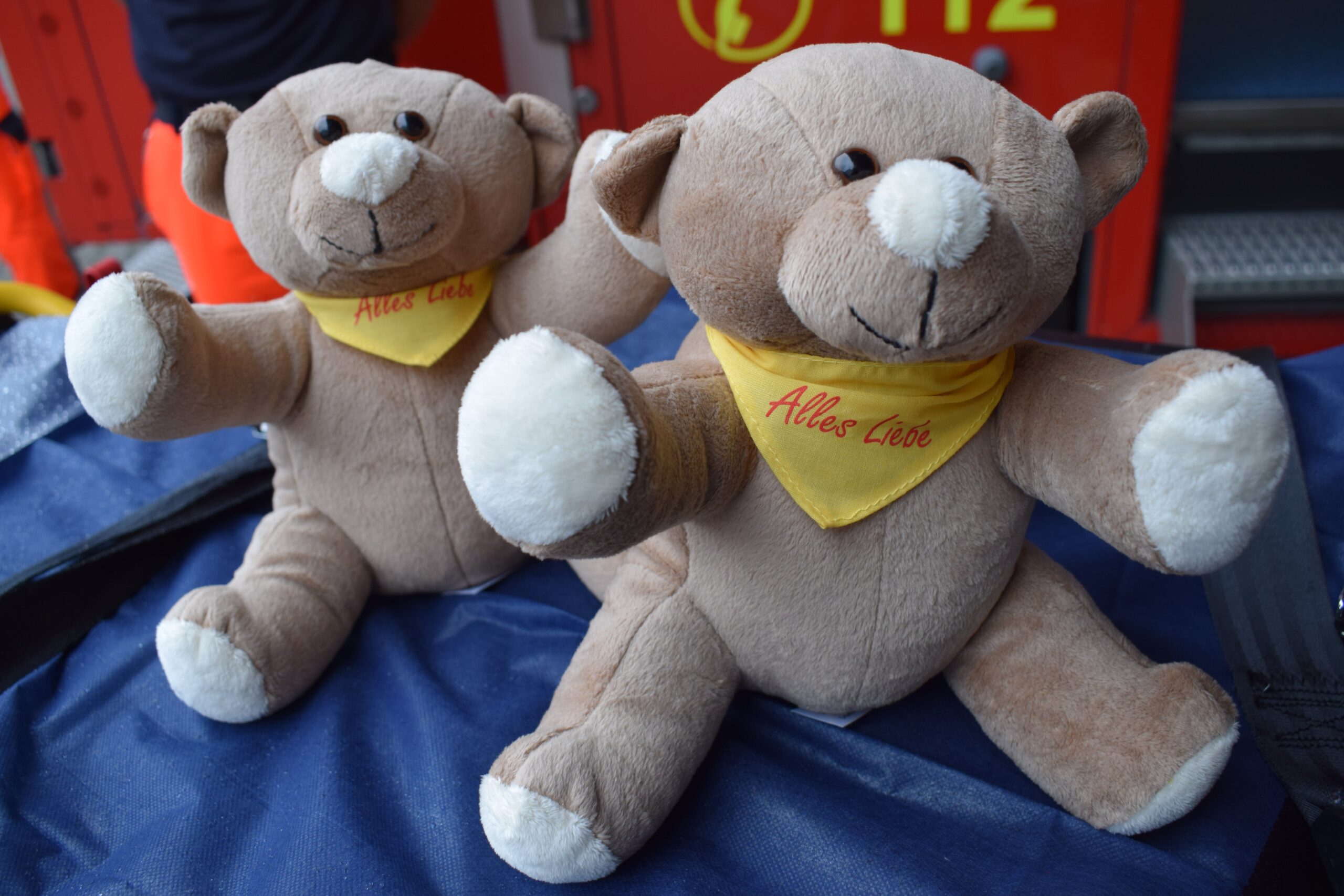 „Es freut uns sehr, dass die Bärchenaktion jetzt ein zweites Mal stattfinden konnte. Beim letzten Mal nahmen die städtischen Rettungsdienste 460 Trösterbärchen entgegen – jetzt sind es sogar 980. Mit der finanziellen Unterstützung Osnabrücker Sponsoren, können Kinder in dieser schwierigen Situation nun ihr eigenes Trösterbärchen bekommen“, erzählt Katharina Pötter. „Die Bärchen machen solche Einsätze für uns, für Eltern, aber vor allem für die Kinder einfacher. Verletzte und eher schüchterne Kinder können uns dann zeigen, wo es ihnen genau wehtut und haben einen Trostspender“, schließt sich Heiko Schnitker an. Nachdem die Plüschgefährten jetzt an der Feuerwache Neustadt in Empfang genommen werden konnten, werden sie an die Rettungsdienste Osnabrücks verteilt.