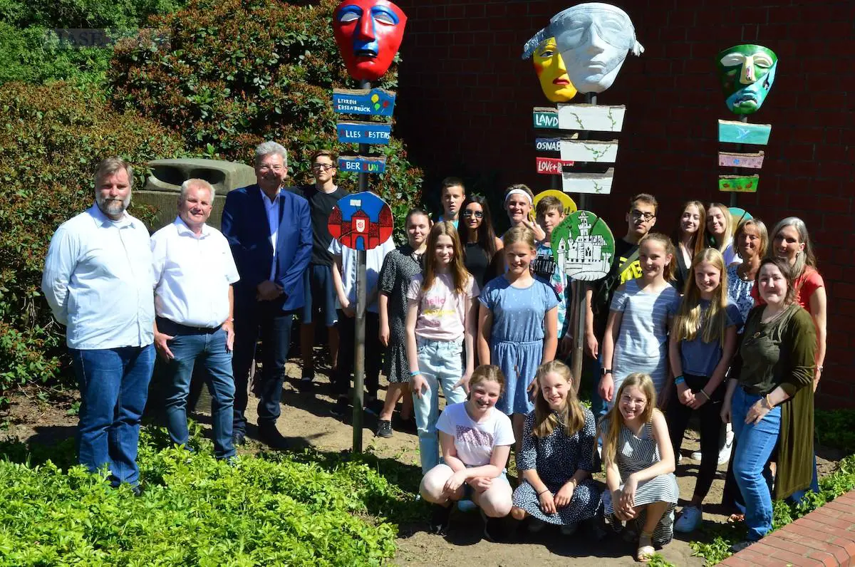 Die Stelen setzen ein Zeichen für eine bunte und friedliche Welt. Diesen Gedanken nahmen jetzt auch die Schülerinnen und Schüler unter dem „50 Jahre gemeinsam für den Landkreis Osnabrück“ auf. Im Jahr 1972 entstand aufgrund einer niedersächsischen Gebiets- und Verwaltungsreform aus den Kreisen Bersenbrück, Melle, Osnabrück und Wittlage der Landkreis Osnabrück in seiner heutigen Form.