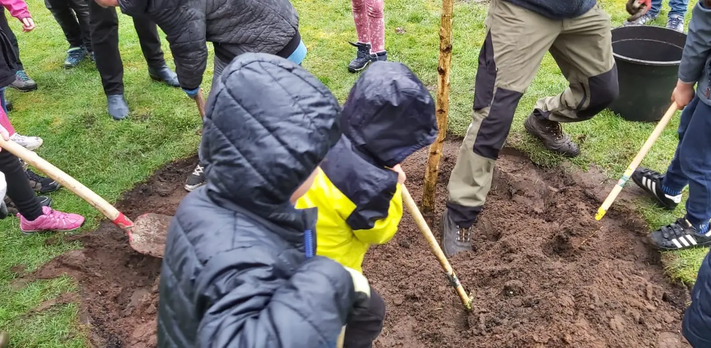 Schüler der Grundschule Hesepe pflanzten mit Mitarbeitenden der Biologischen Station Haseniederung den Baum des Jahres 2023 in Sögeln.