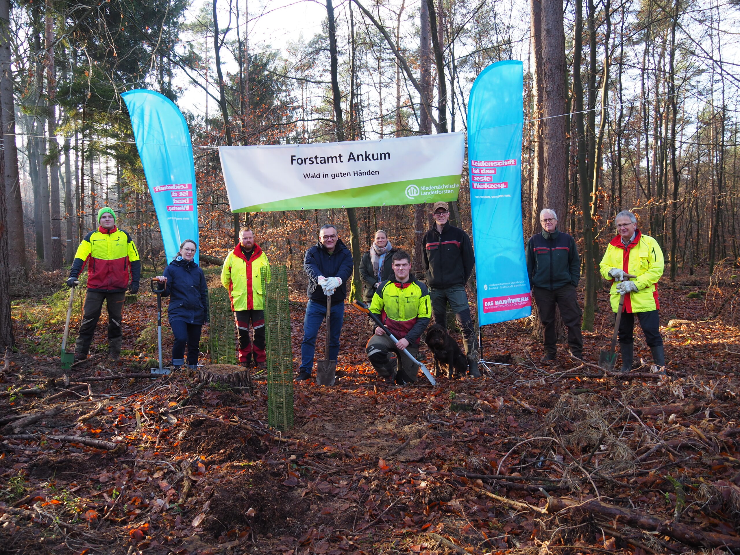 Mitarbeitende der Handwerkskammer und des Forstamtes Ankum pflanzten Bäume für die besten Handwerkerinnen und -handwerkern aus dem Kammerbezirk. /Foto: HWK/Nicke