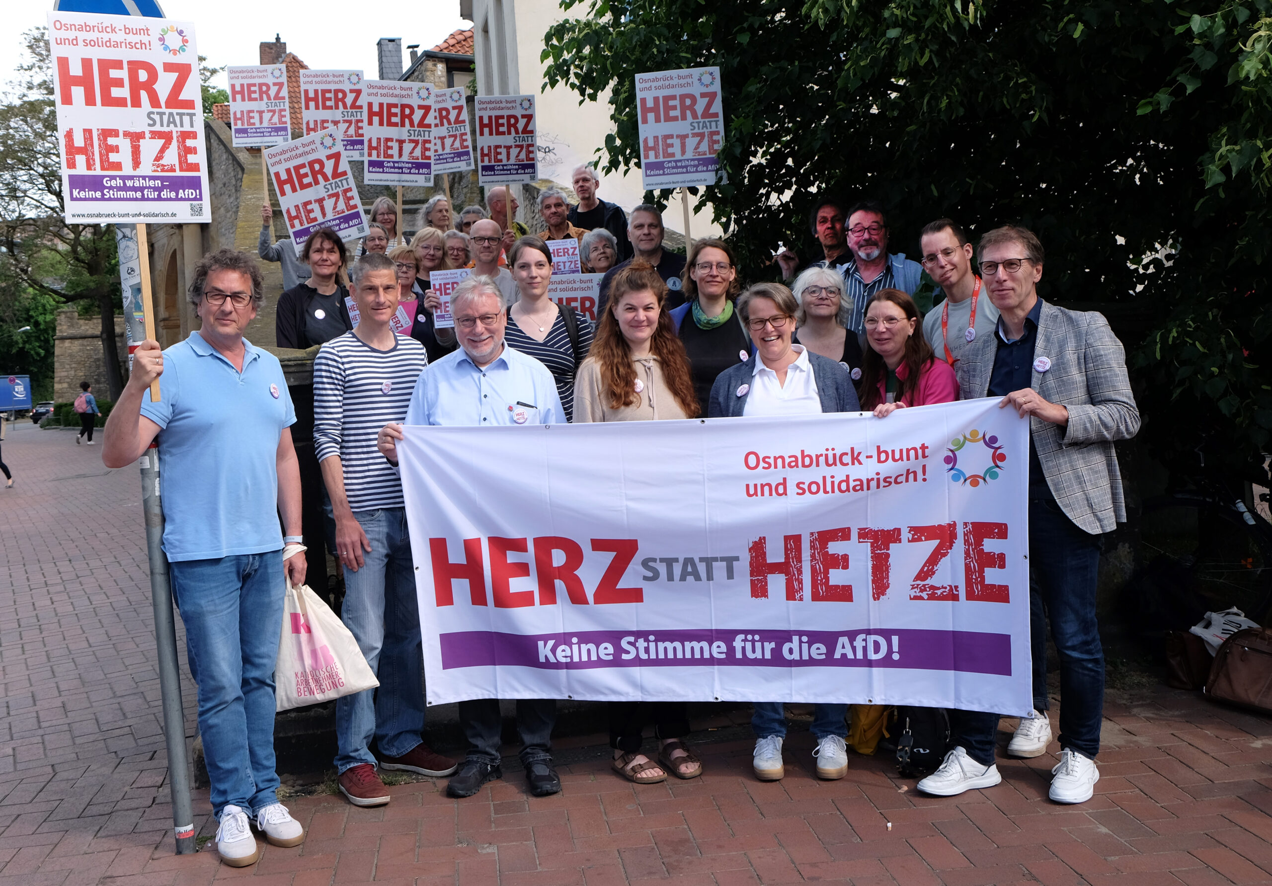 Vor zwei Wochen versammelten sich zahlreiche Unterstützer und Aktivisten im Herzen von Osnabrück, um den Start der Kampagne „Herz statt Hetze“ zu feiern. Ziel der Initiative ist es, die Bürger zur Teilnahme an der Europawahl zu ermutigen, jedoch ausdrücklich nicht die AfD zu wählen. Mit Infoständen und Flyer-Aktionen vor allem in den Stadtteilen, in denen die AfD bei den letzten Wahlen viele Stimmen gewinnen konnte, will die Kampagne über die „rechtsextremen, rassistischen, demokratiefeindlichen Ziele“ der Partei aufklären.