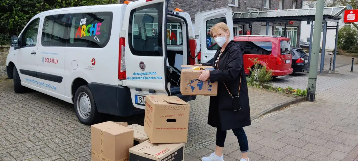 „Wenn die Kinder nicht zu uns kommen können, kommen wir zu den Kindern“, so Stephanie Koopmann, Einrichtungsleiterin des Kindertreffs, „wir wussten, wie groß der Bedarf an passender Kleidung ist. Die Kinder sind gewachsen, die Schuhe zu klein, die Hosen zu kurz. Doch die Geschäfte haben geschlossen und nicht jede Familie hat die Möglichkeit, online zu bestellen. Viele Menschen hatten uns im Vorfeld gut erhaltene Sachen gespendet, die nur noch den Weg zu den Familien finden mussten. Also haben wir kurzerhand bei unseren wöchentlichen Hausbesuchen die Kleider- und Schuhgrößen abgefragt, um entsprechende Boxen für jedes Kind zusammenzustellen.“  64 Kinder mussten eingekleidet werden, eine Menge Pakete wurden in den Räumlichkeiten des Kleiderlagers im Landwehrviertel gepackt. Dabei wurde jedes  Kleidungsstück von den Mitarbeiterinnen der Arche und des Kleiderlagers gesichtet und liebevoll ausgesucht.  „Kleidung bedeutet so viel mehr, als angezogen zu sein. Man muss sich darin wohlfühlen – dass gilt für Kinder ebenso, wie für Erwachsene. Also haben wir immer genau im Blick gehabt, für wen wir gerade packen“, so Ingrid Beeck ehrenamtliche Mitarbeiterin vom Kleiderlager.